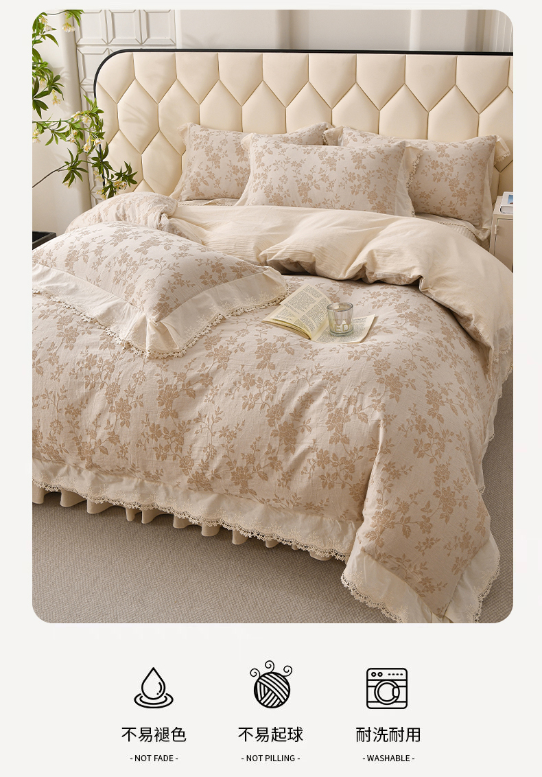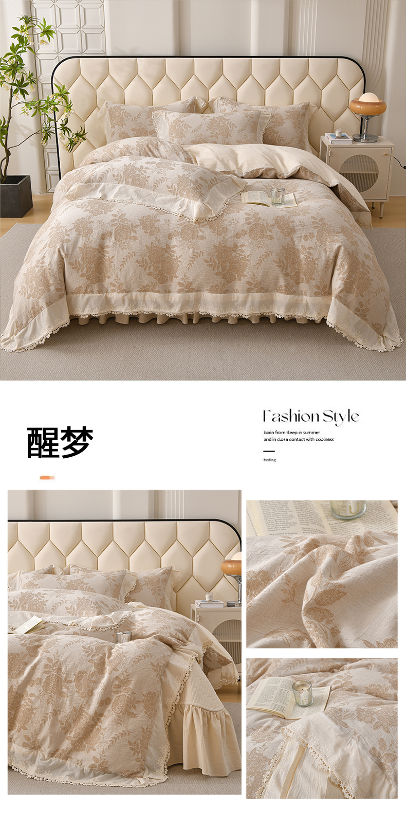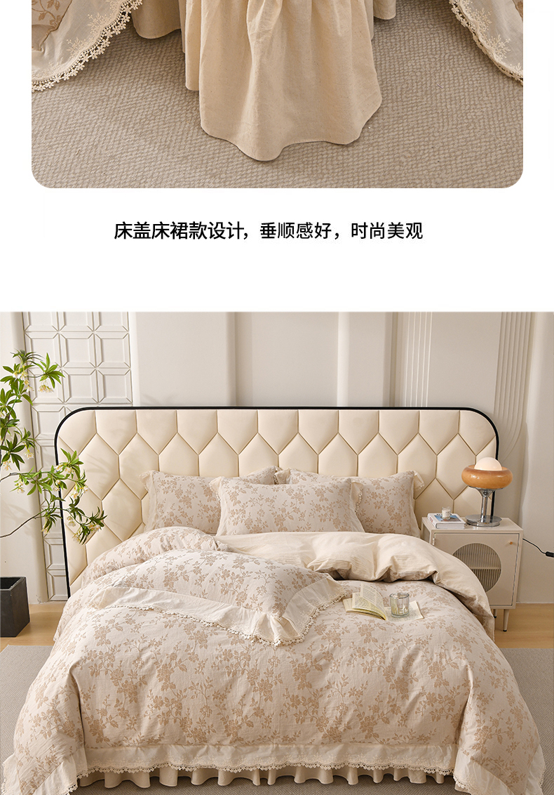 (总)金艾草 2026新款全棉纯棉A类棉麻提花床盖四件套法式大花边四件套