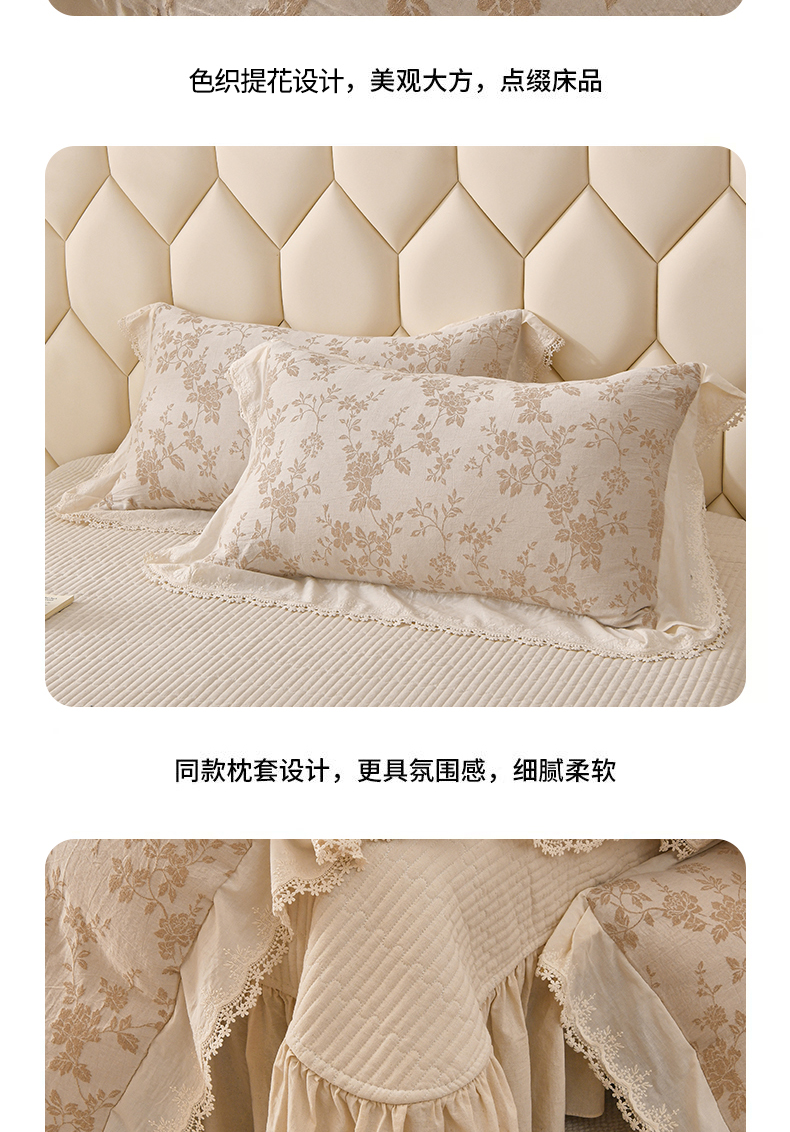 商品名称:(总)金艾草 2026新款全棉纯棉A类棉麻提花床盖四件套法式大花边四件套