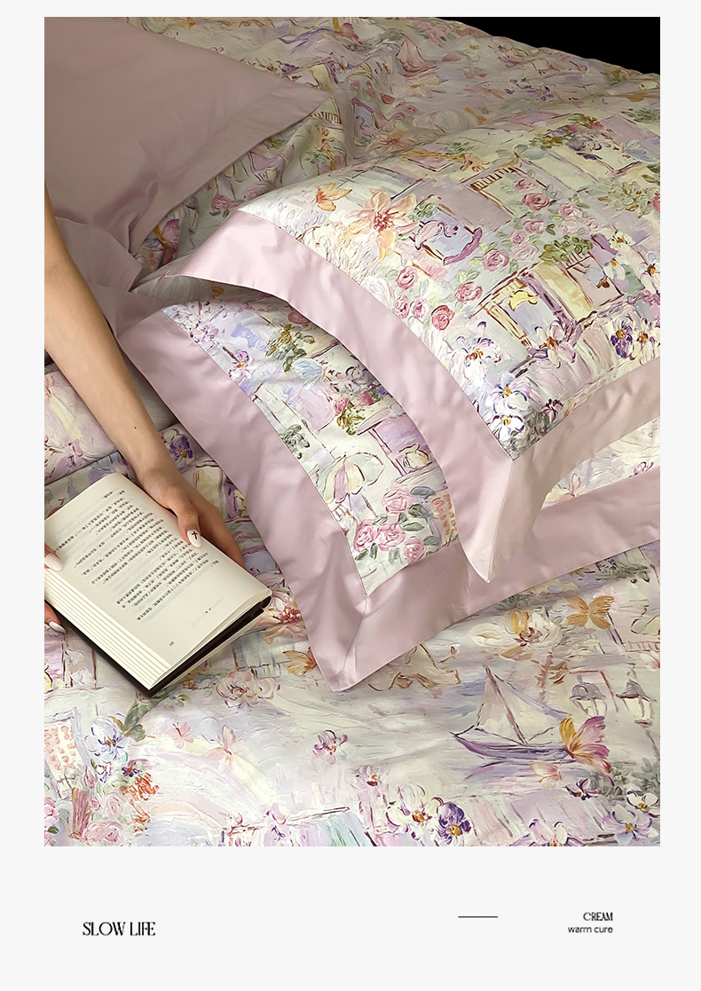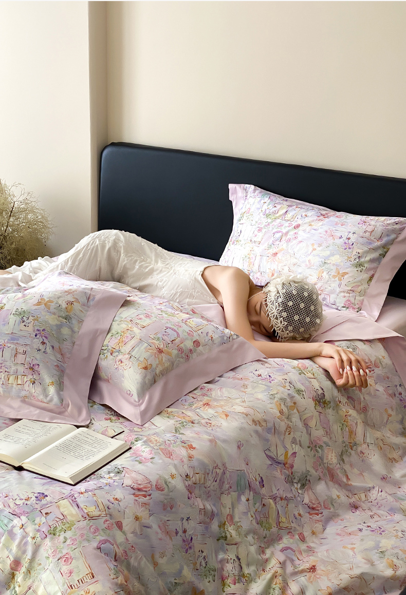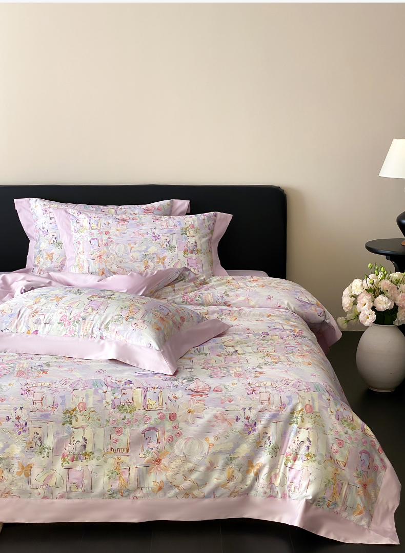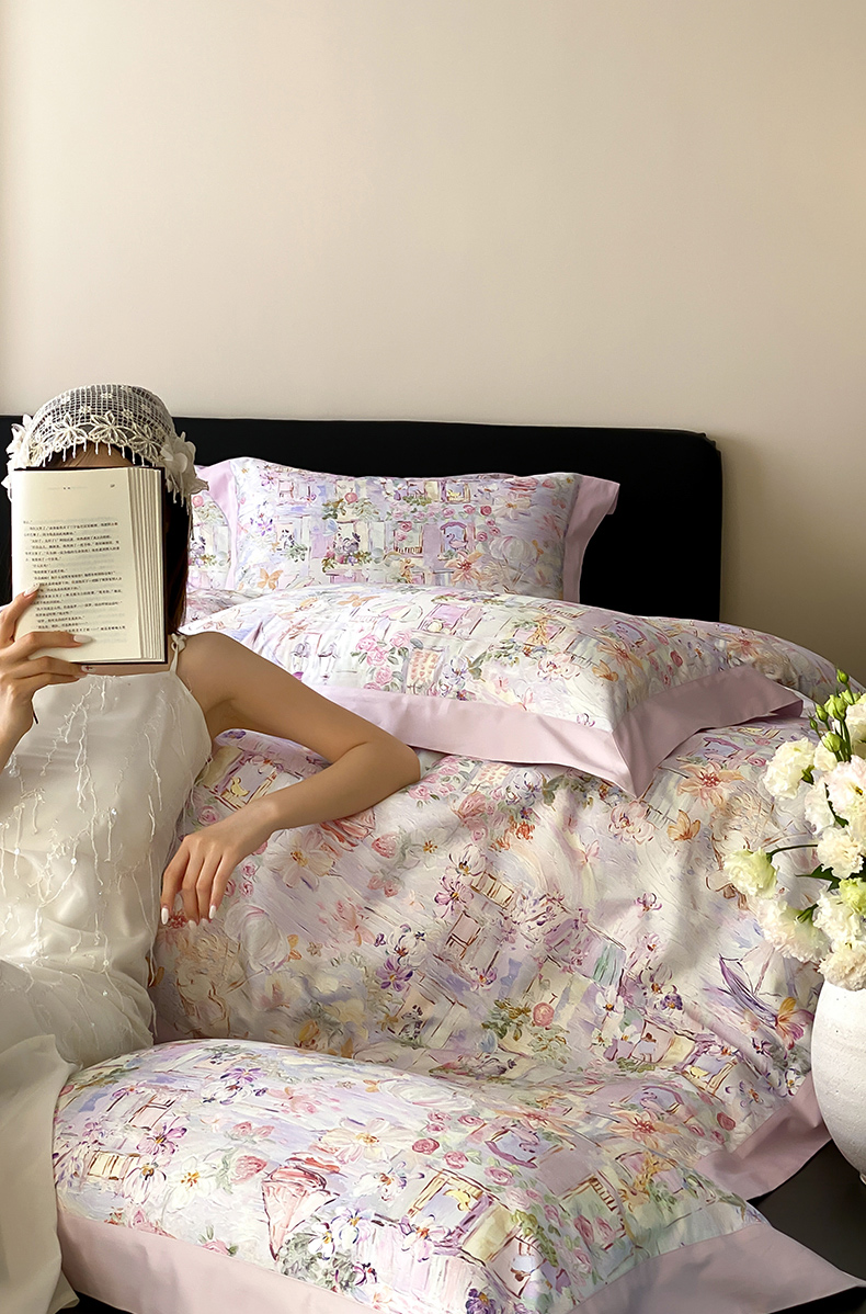 云栖家居 2025全棉纯棉长绒棉纯棉A类50支数码印花系列四件套-春园 魔幻甜心-紫