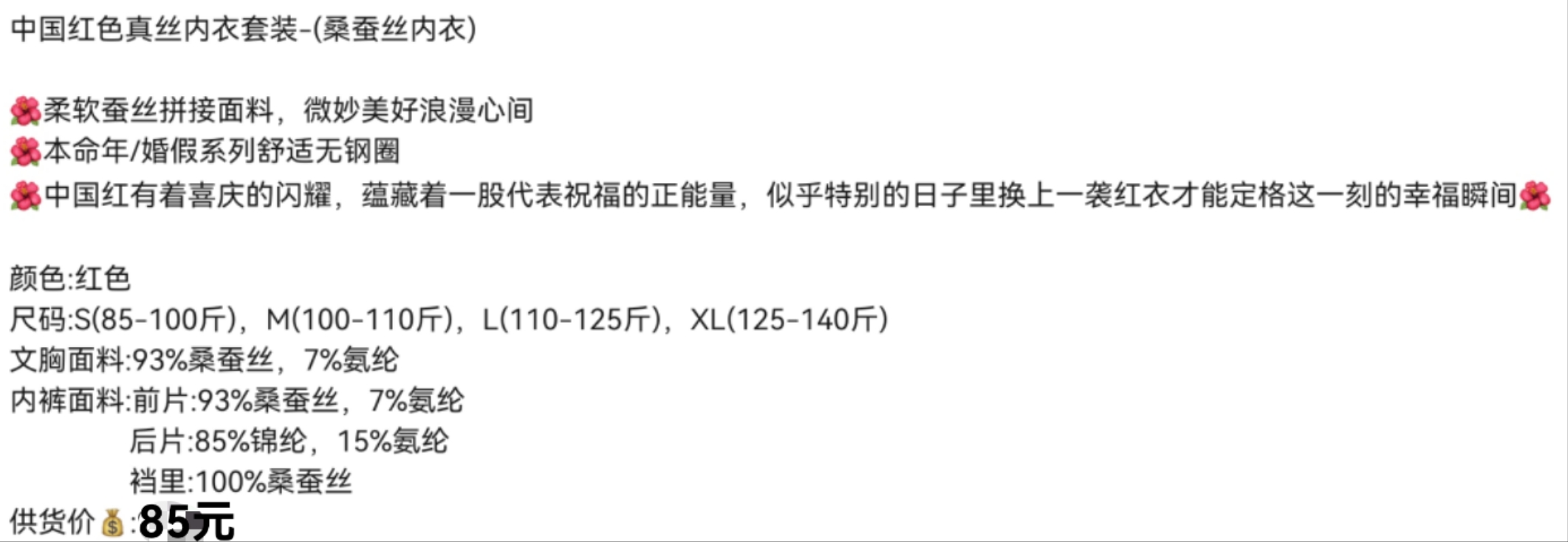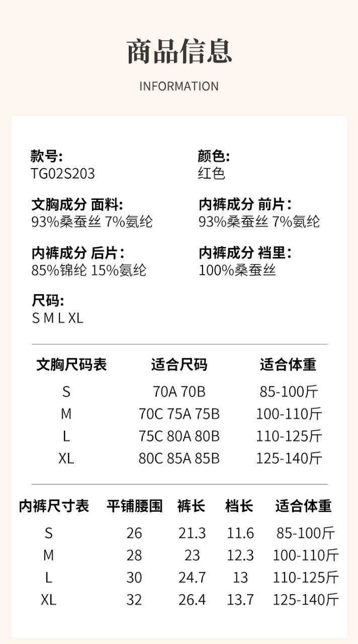商品名称:(总)蚕云阁蚕丝家居 2025新款中国红真丝内衣套装 桑蚕丝内衣