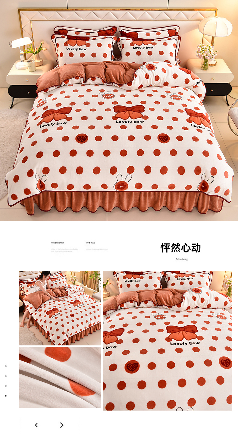 商品名称:馨梦缘 2025直播爆款8.5斤牛奶绒四件套加厚保暖床裙金貂绒 怦然心动