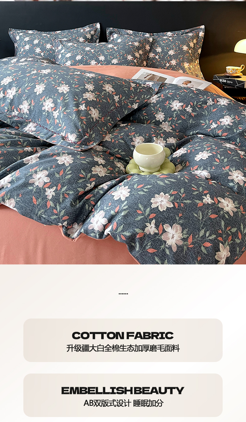 商品名称:宜家坊 2025新款升级疆大白全棉加厚生态磨毛四件套 香草集