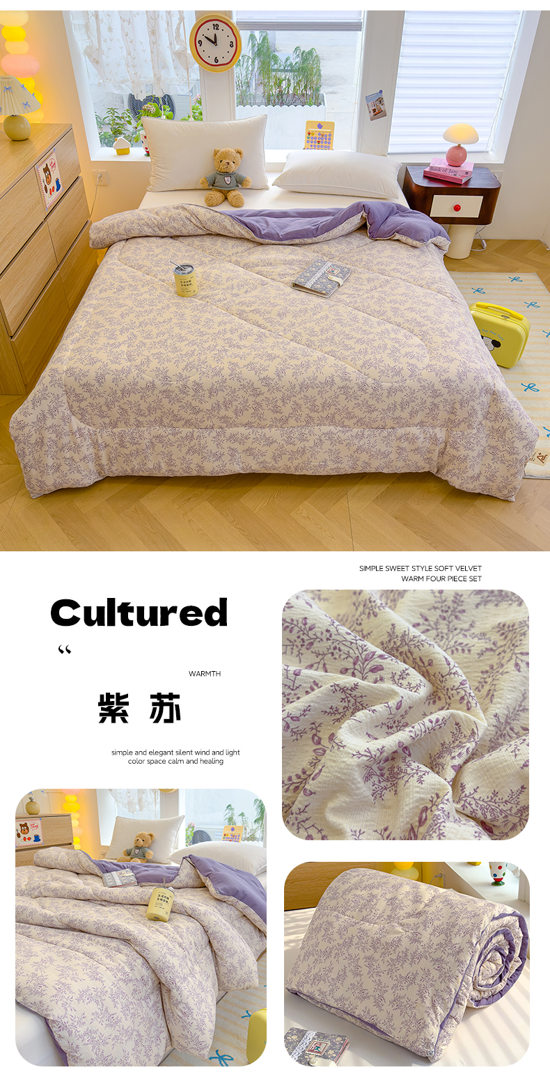 • 91家纺网 家纺一手货源 找家纺 弗苓家纺 2025新款A类云感有氧双层纱冬被被子被芯 紫爱心