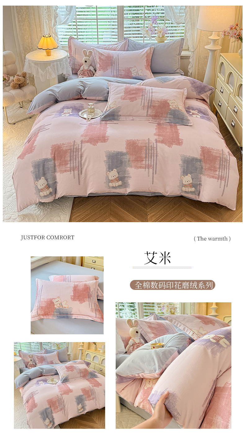 当前位置: 91家纺网 > 商品网购 > 床品套件 > 四件套 > 全棉普通四件套 > 巧玲珑 2025新款100%数码印花生态AB版四件套 艾米