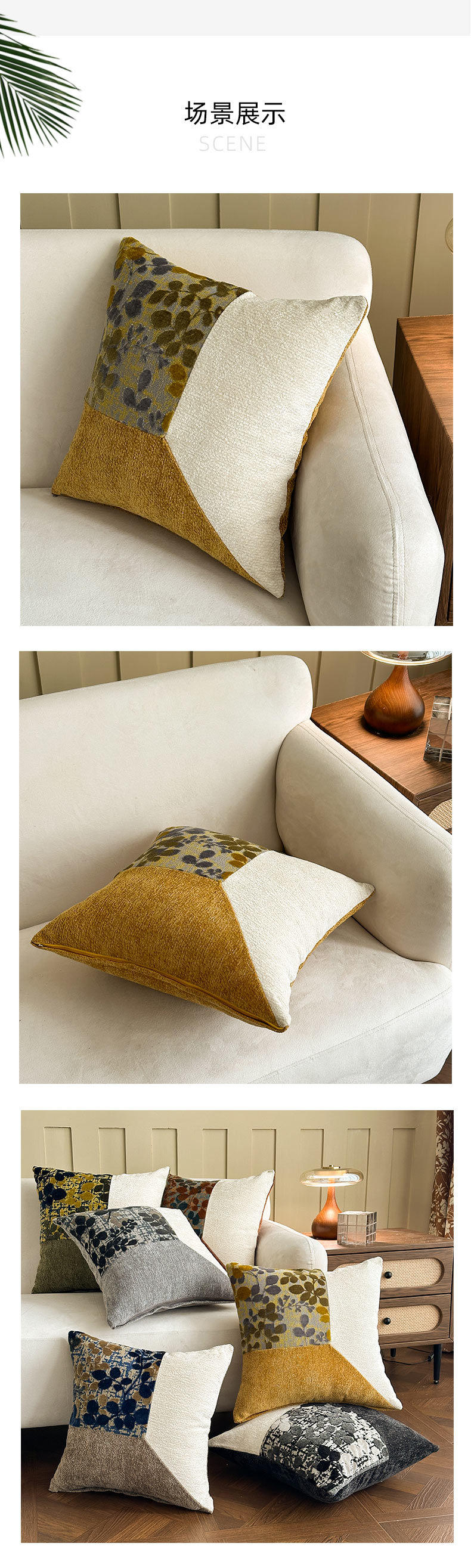 新奇异 2025新款雪尼尔三拼水墨叶抱枕 三拼墨叶-绿色