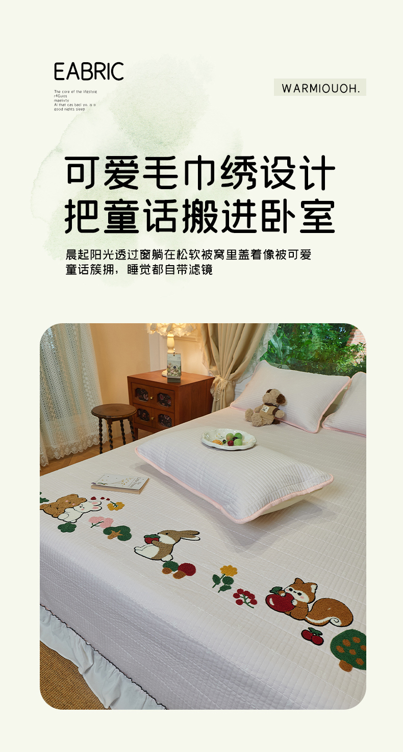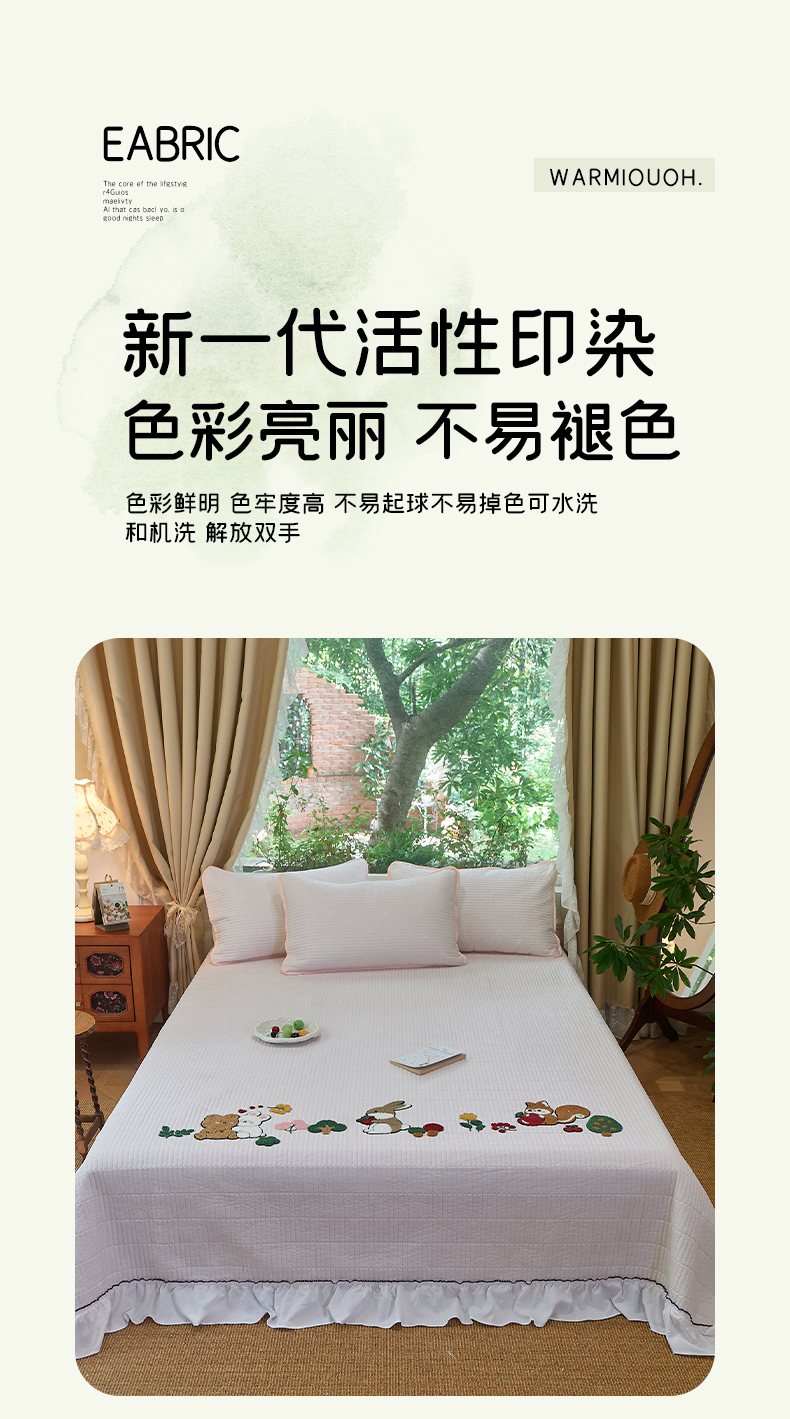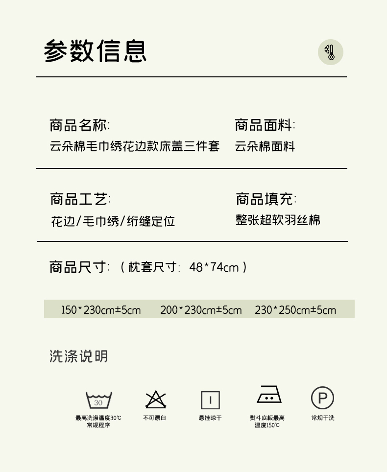 当前位置: 91家纺网 > 商品网购 > 床品套件 > 三件套 > 鑫喜莱家纺 2025新款云朵棉毛巾绣花边款床盖三件套系列 包装展示