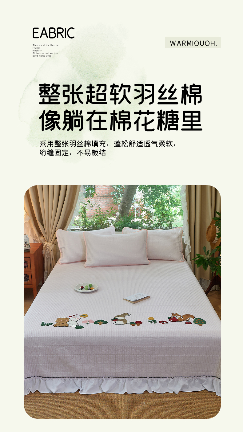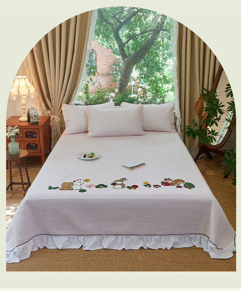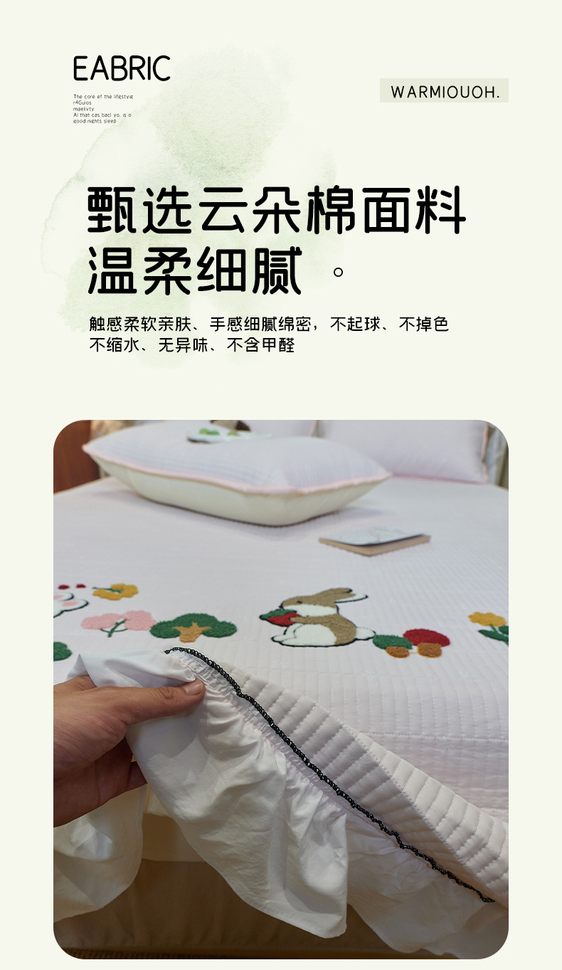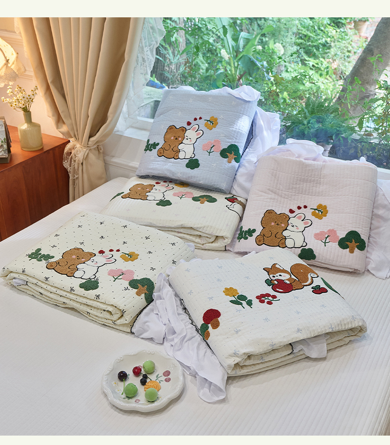 当前位置: 91家纺网 > 商品网购 > 床品套件 > 三件套 > 鑫喜莱家纺 2025新款云朵棉毛巾绣花边款床盖三件套系列 包装展示