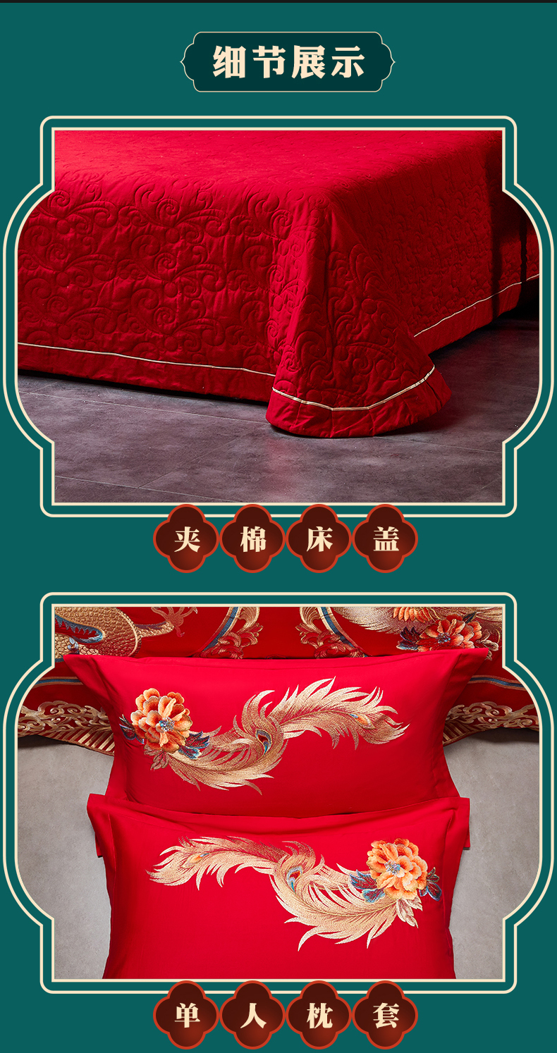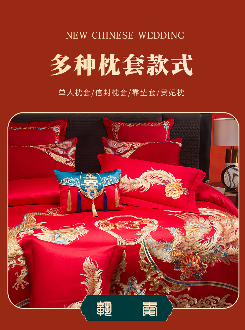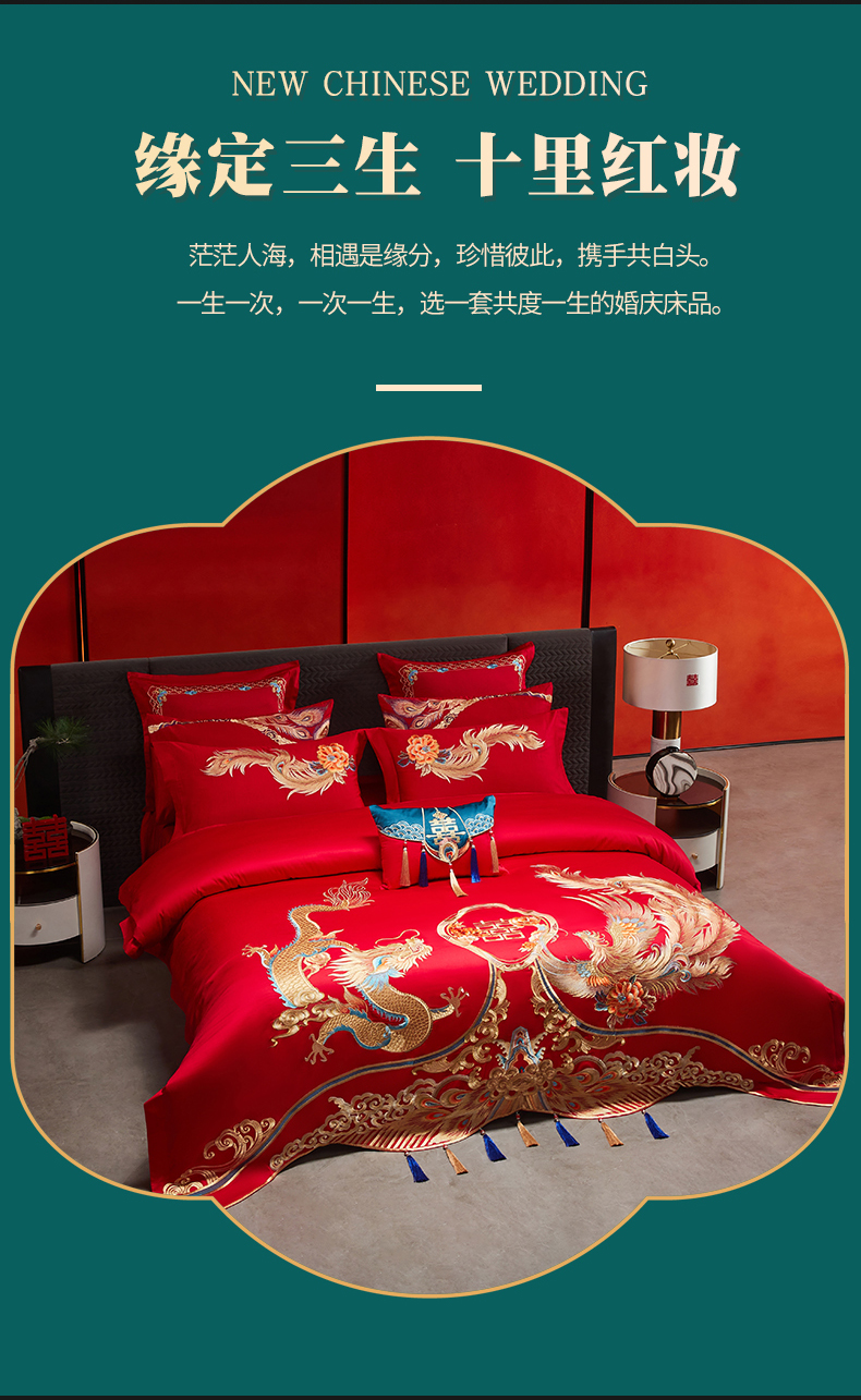 当前位置: 91家纺网 > 商品网购 > 床品套件 > 四件套 > 婚庆四件套 > 红番天婚庆 (控价)2025新款全棉新中式刺绣款婚庆四件套多件套 龙凤盛典-金