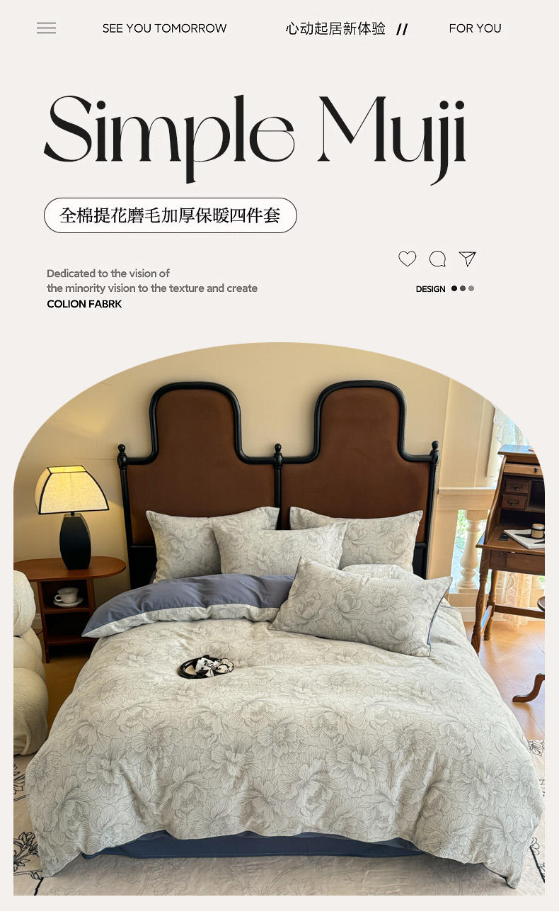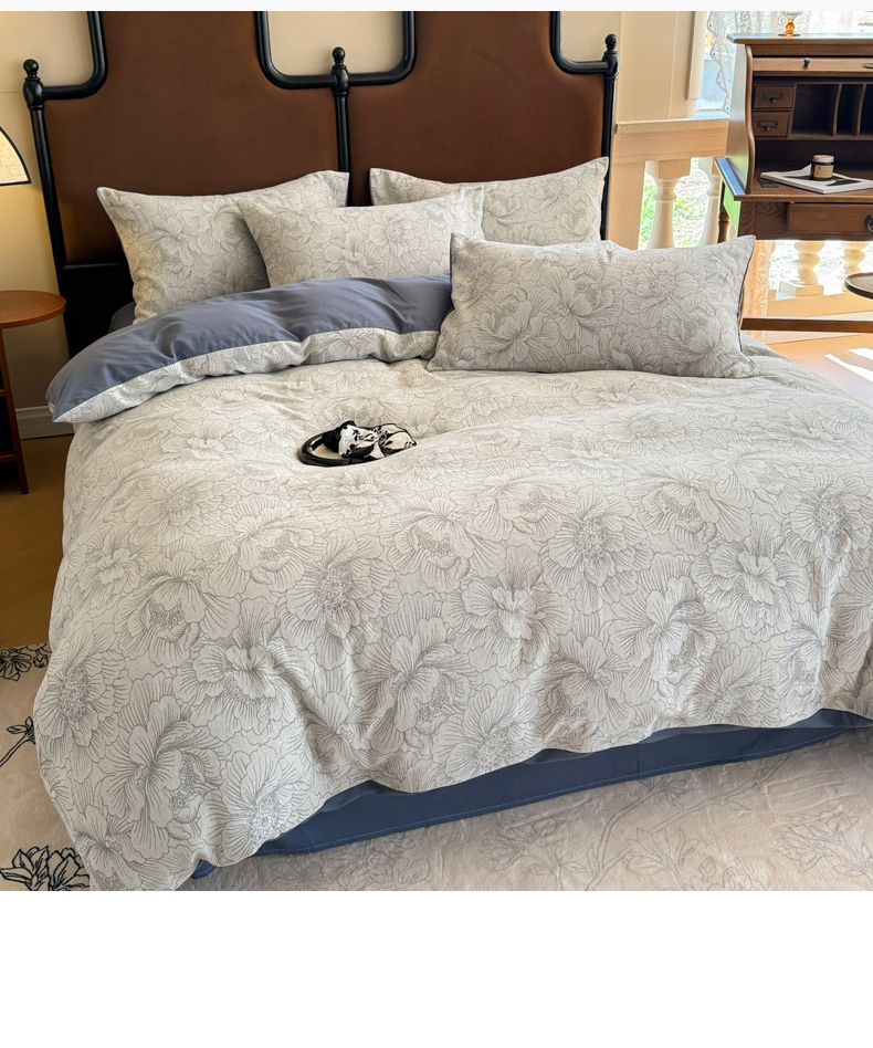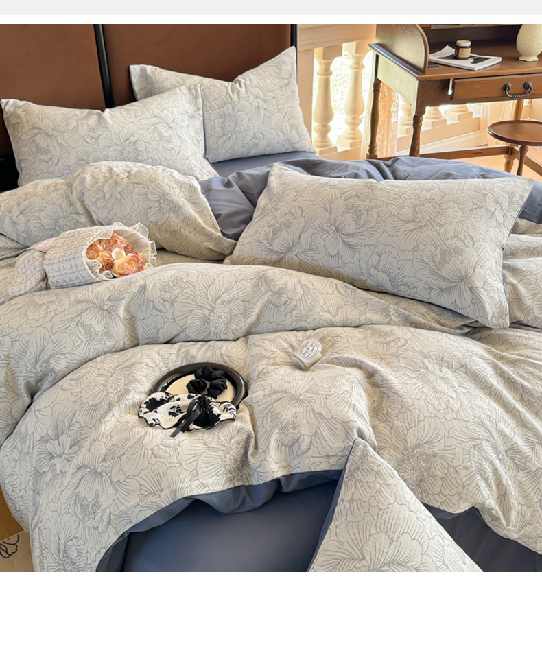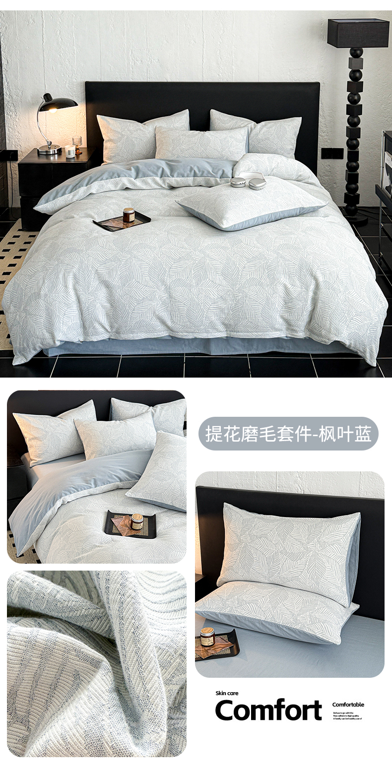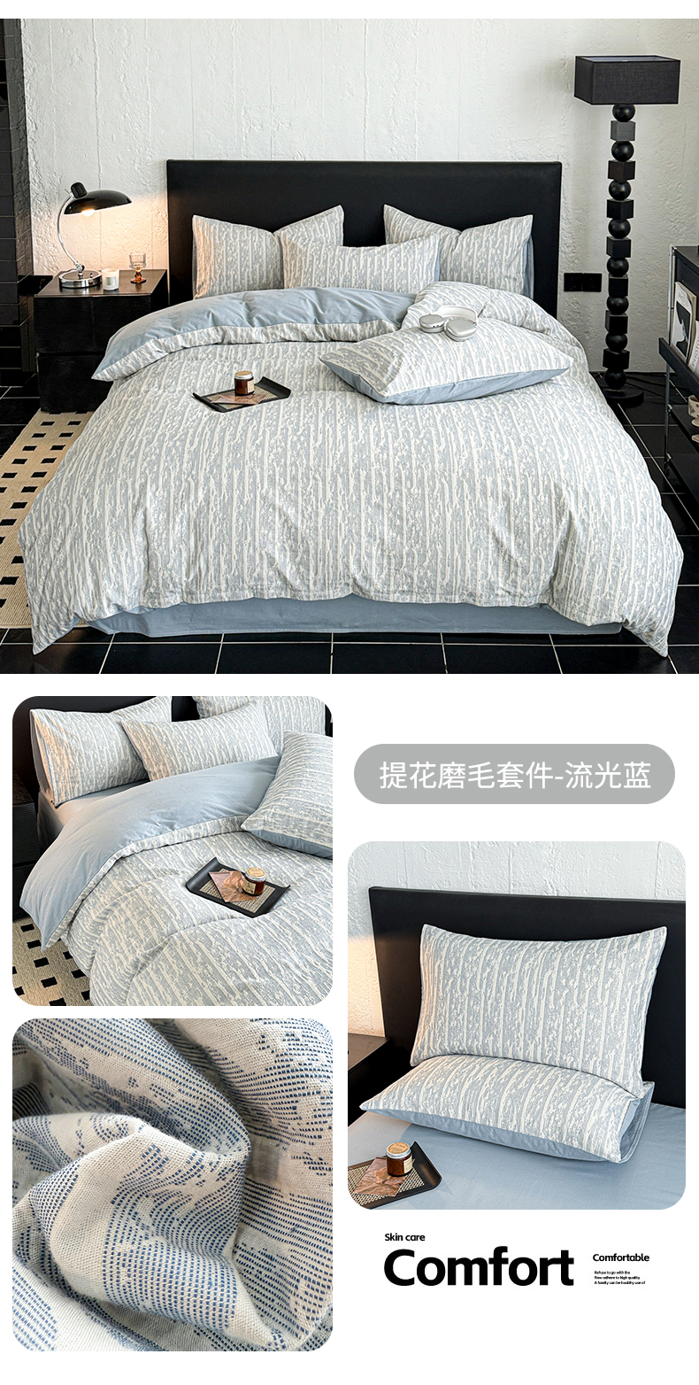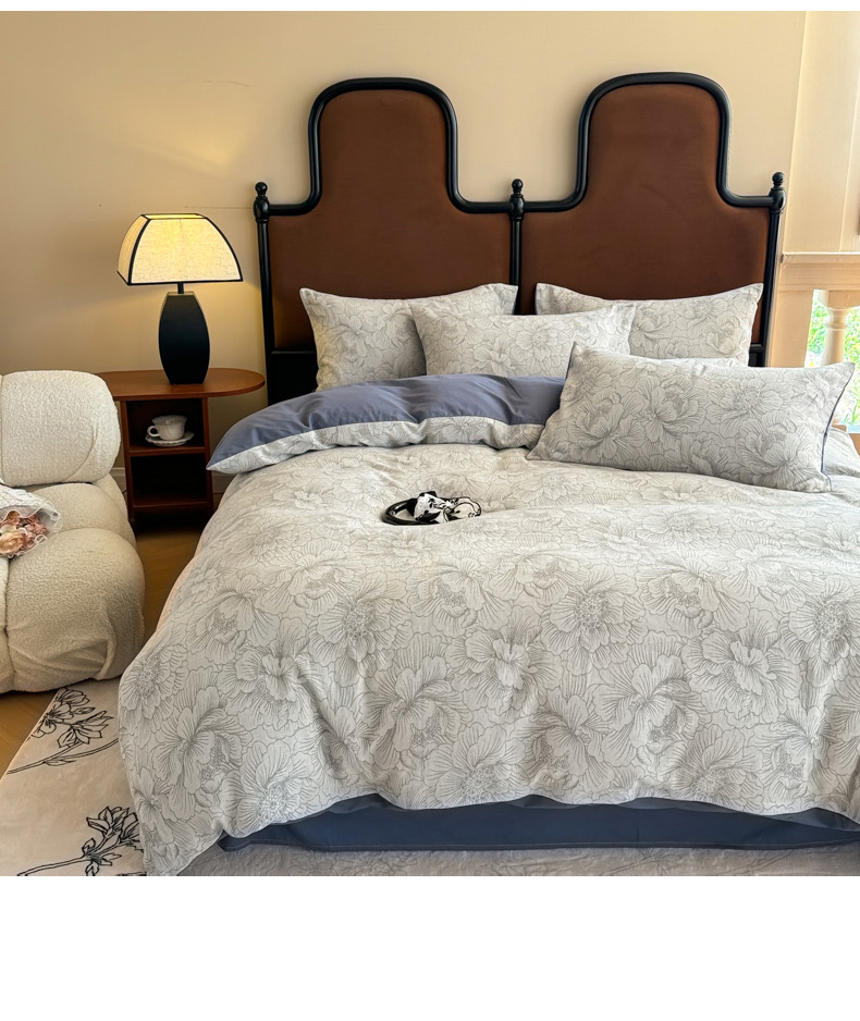• 91家纺网 家纺一手货源 找家纺 眠博士 2025新款60s长绒棉纯棉提花磨毛被套单被套被套单品 提花磨毛单被-繁花灰蓝