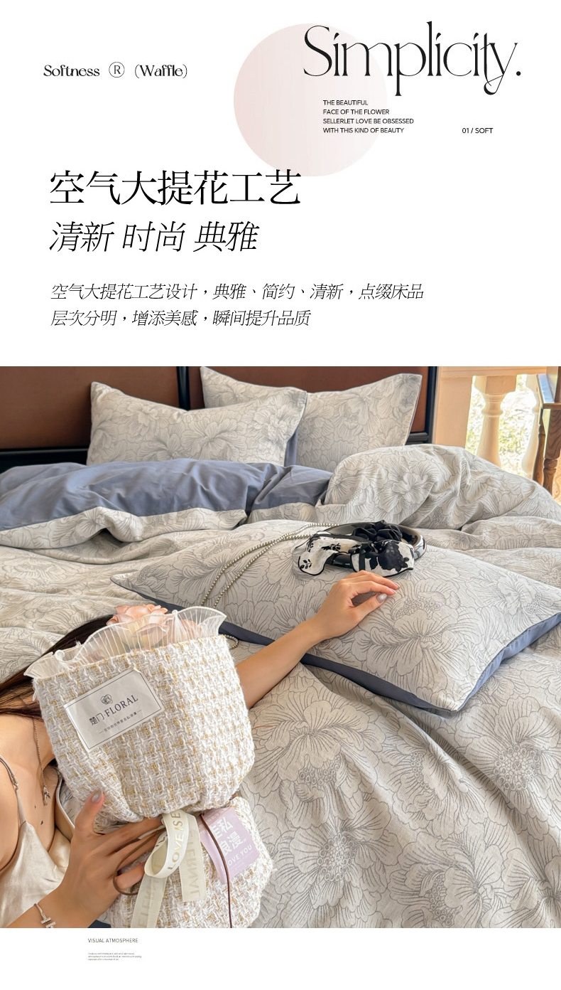 • 91家纺网 家纺一手货源 找家纺 (总)眠博士 2026新款色织水洗双层纱提花四件套,曲奇粉格,曲奇灰格,曲奇卡其格,曲奇蓝格,曲奇绿格