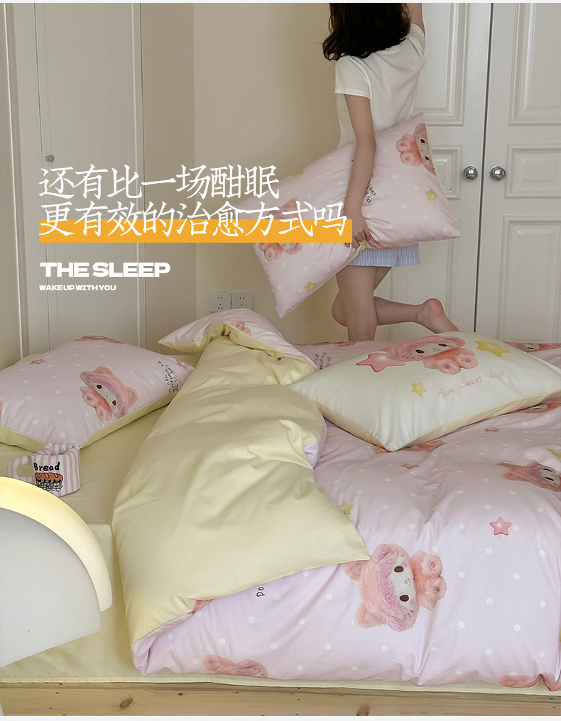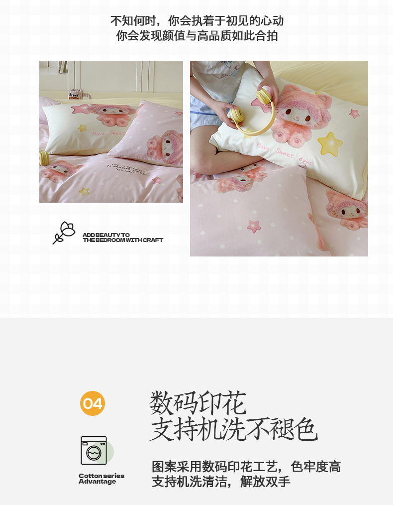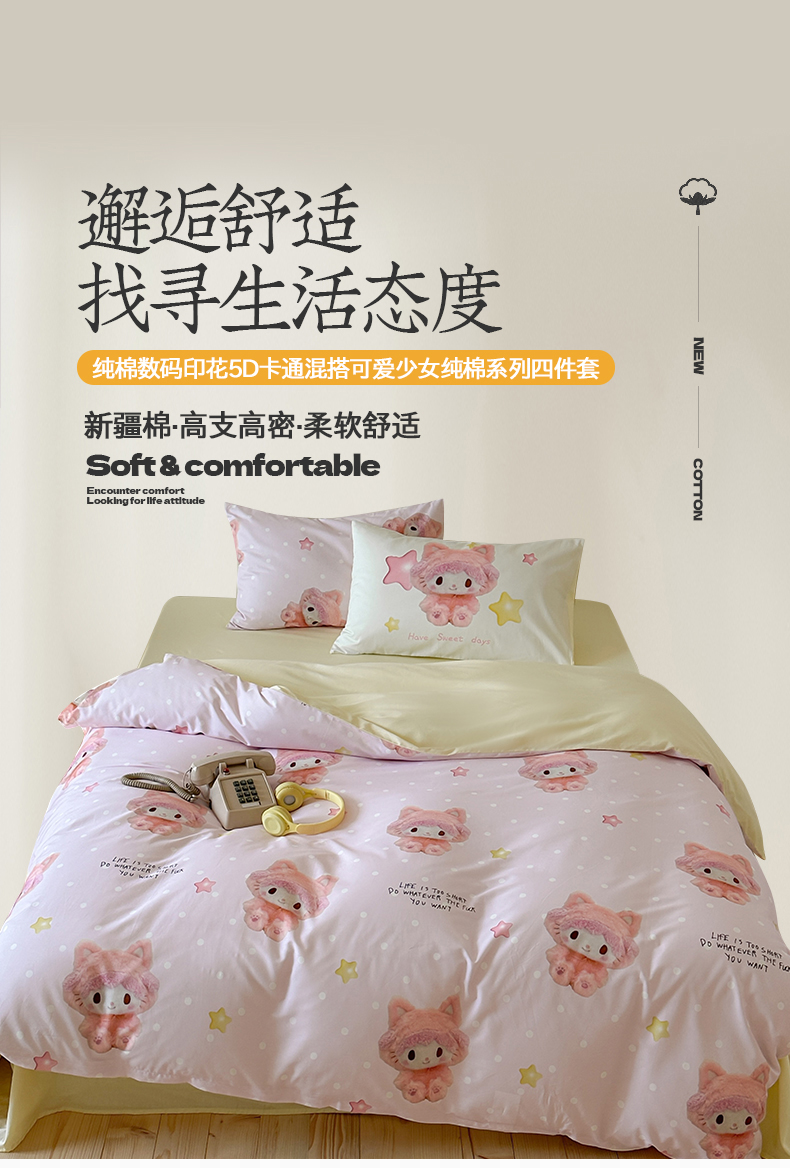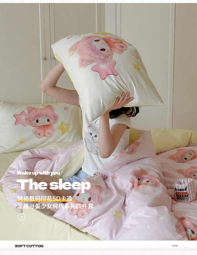 当前位置: 91家纺网 > 商品网购 > 床品套件 > 四件套 > 全棉普通四件套 > 桃子家居 2025新款纯棉数码印花5D卡通混搭可爱少女纯棉系列四件套 棉5D-可爱兔兔
