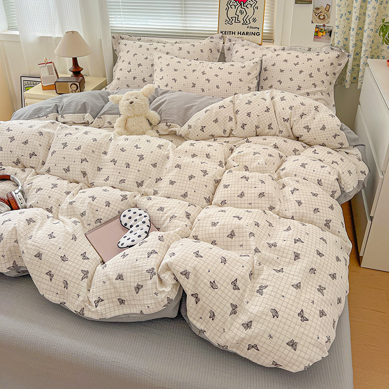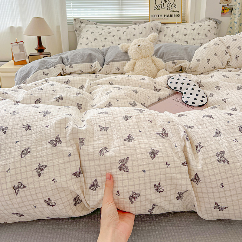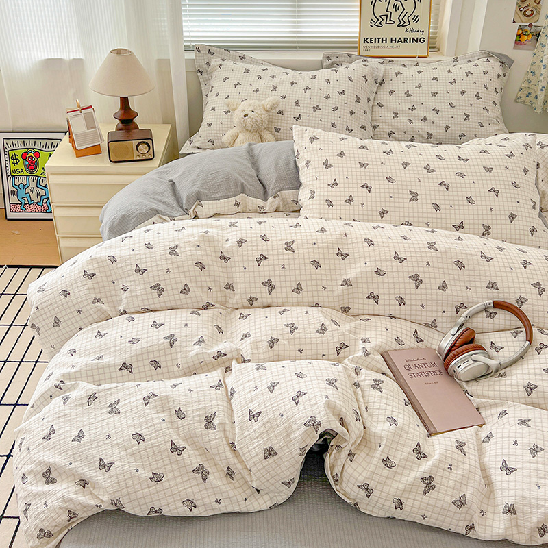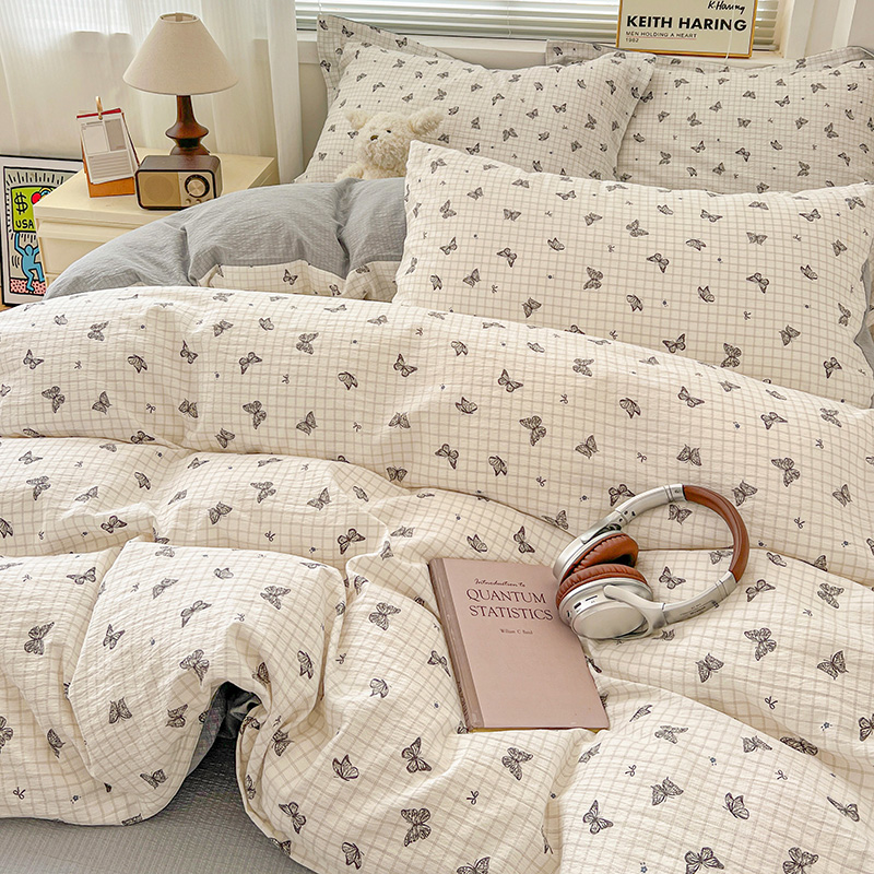 (总)一比一家纺 2026新款古法水洗仿棉云感纱A类四件套,知秋,白兰地,彩波波,草莓点点,格纹狗,嗨皮狗,赫莲娜,花千朵,花絮,酱果,蓝小格,莉莉安,梦幻灰,南瓜果果,葡萄,浅梦,森屿,疏影,甜心草莓,甜心喵,条纹狗,童趣,小黄花,小木马,小时光,小幸运,修修狗,薰衣草,灰樱桃,樱桃熊,鱼多多,组合图仅做展示不可下单