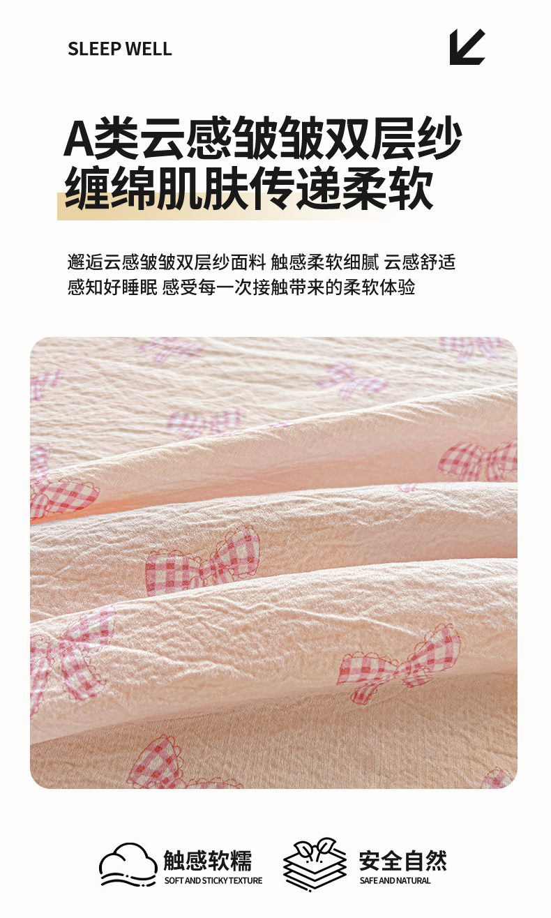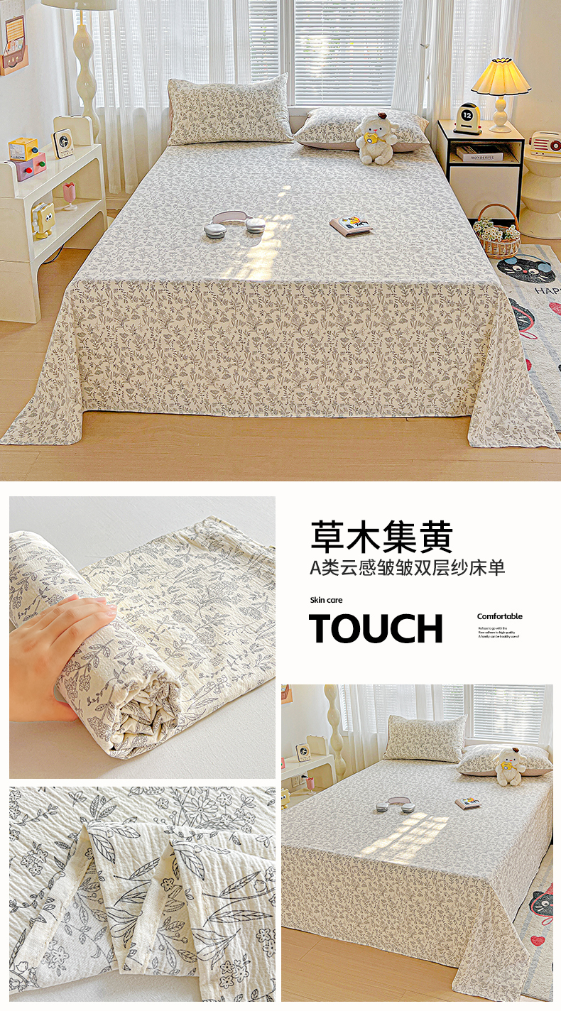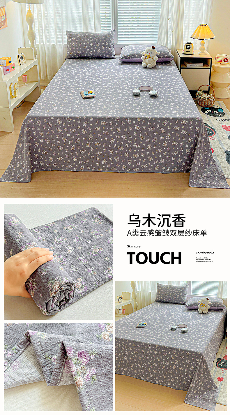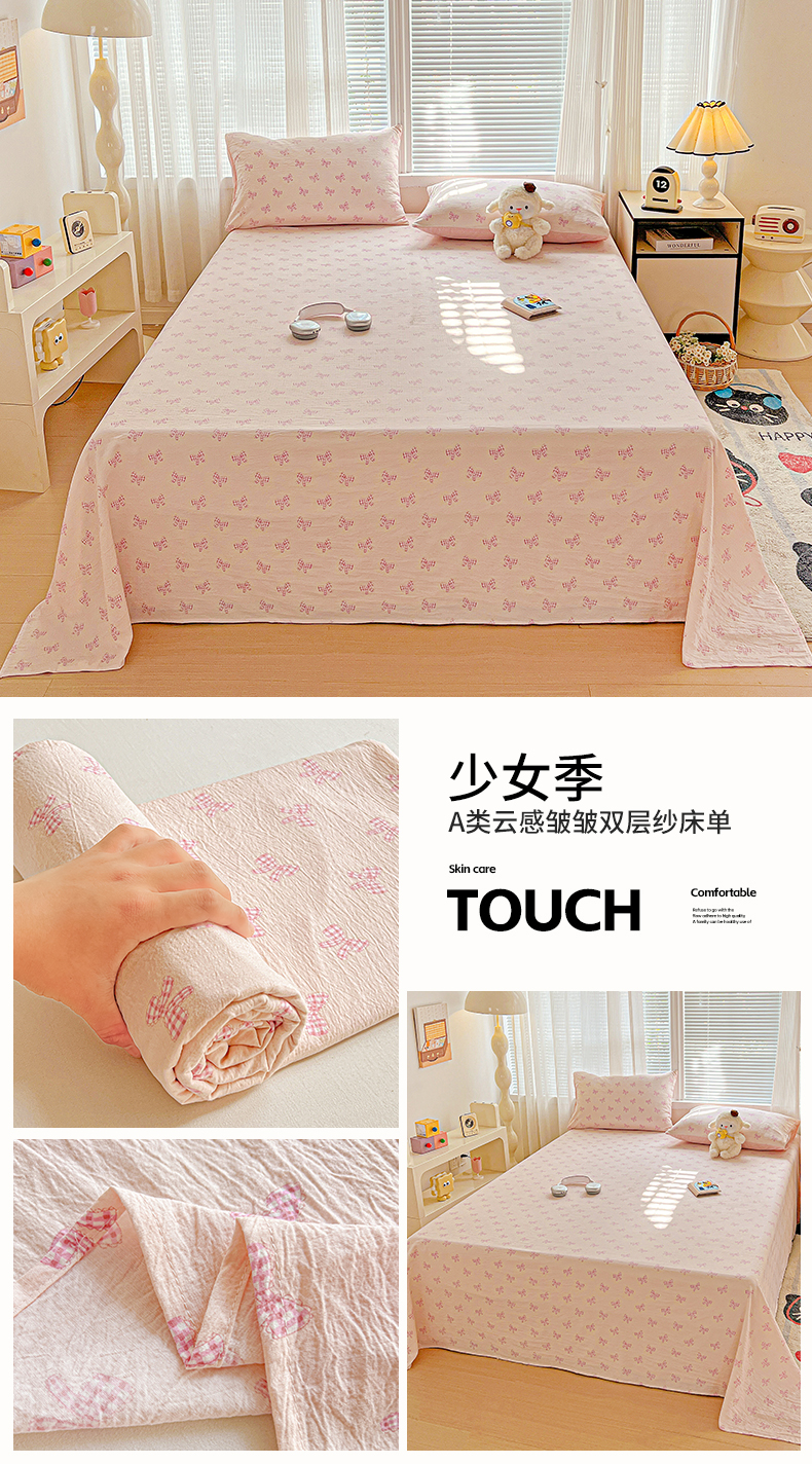 • 91家纺网 家纺一手货源 找家纺 格真 2025新款A类云感木棉皱皱双层纱床单单床单床单单品床单三件套 波点-柔雾蓝