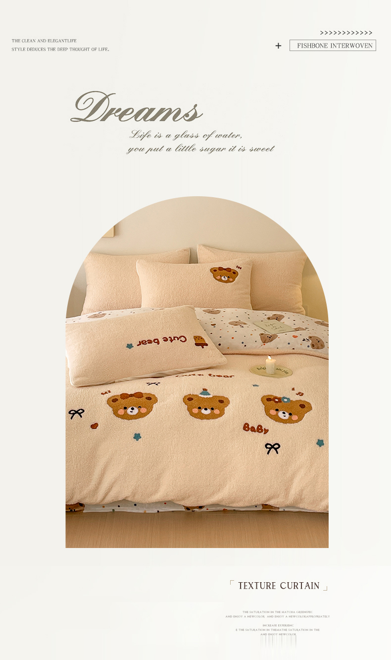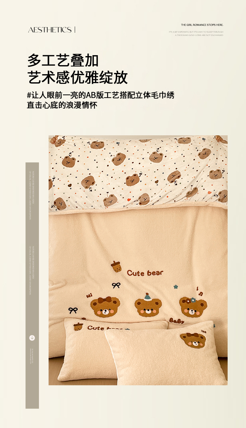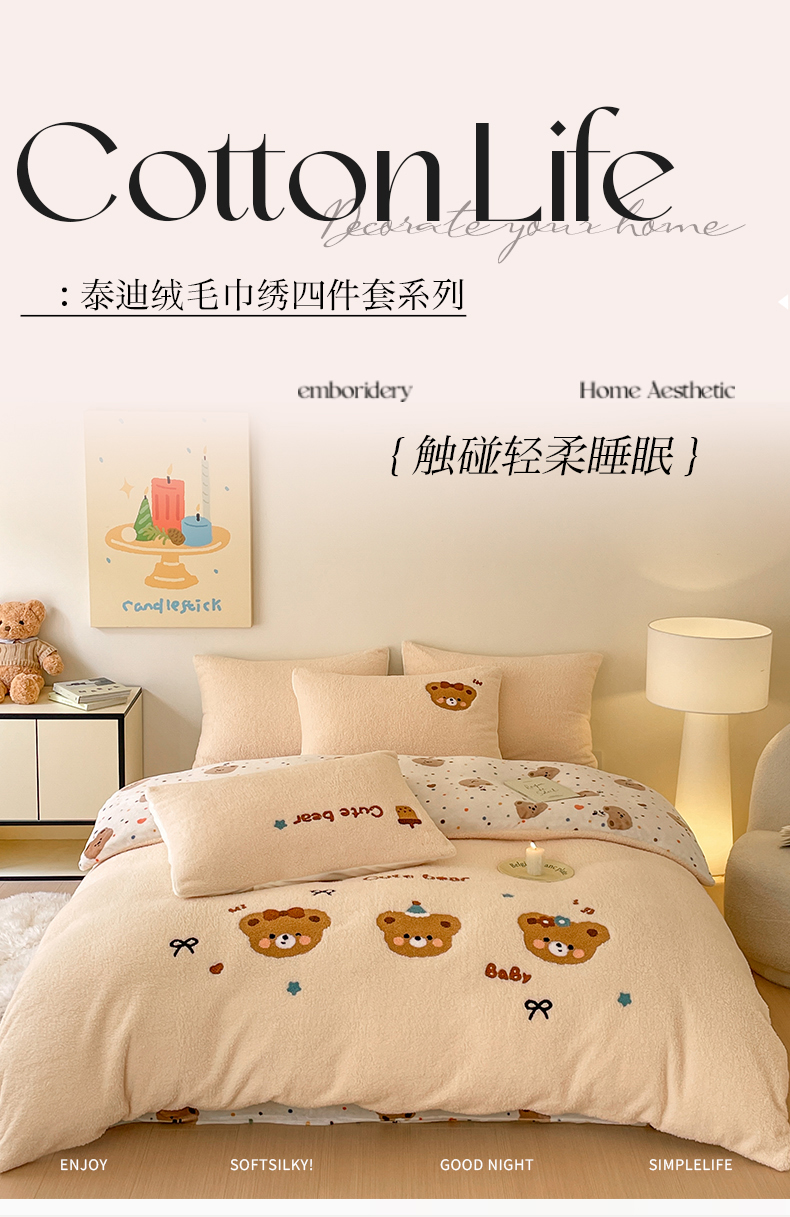 川悦生活 2025新款泰迪绒毛巾绣卡通四件套 茶茶熊仔