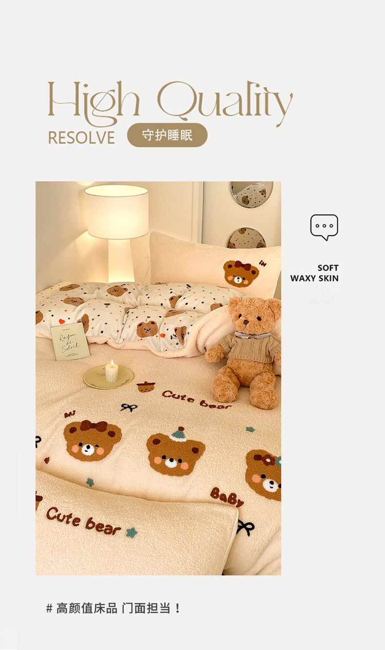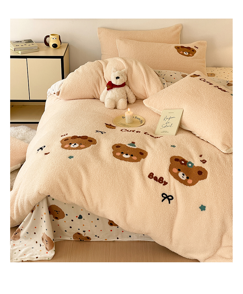 商品名称:川悦生活 2025新款泰迪绒毛巾绣卡通四件套 茶茶熊仔