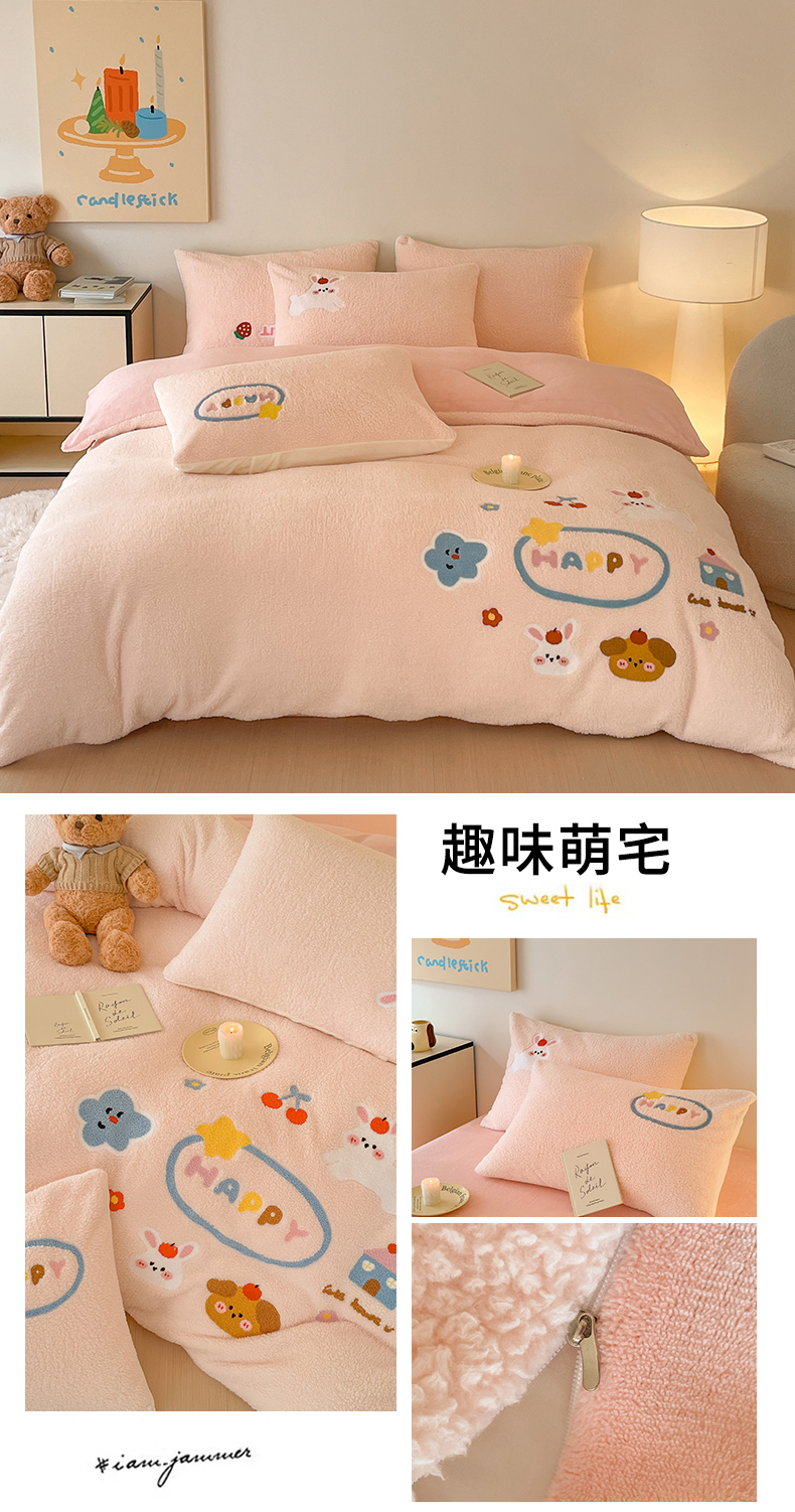 (总)川悦生活 2025新款立体雪花绒印花四件套学生床系列一场景一,ins樱桃,爱米兔,冰激凌小熊,波波熊,啵啵草莓,彩虹爱心粉,彩虹爱心蓝,彩虹爱语粉,彩虹爱语蓝,哒哒鸭丫,嘎嘎小熊,橘兔,可爱熊,可可小狗,快乐鸭鸭,蜜语奶兔,奶芙小花,奶咖小熊,奶味云朵,妮娜兔,巧克力熊,桃心爱语,甜蜜日常粉,甜系粉熊,甜系龙龙,小熊花园,幸福甜兔,熊小巴,郁金奶兔