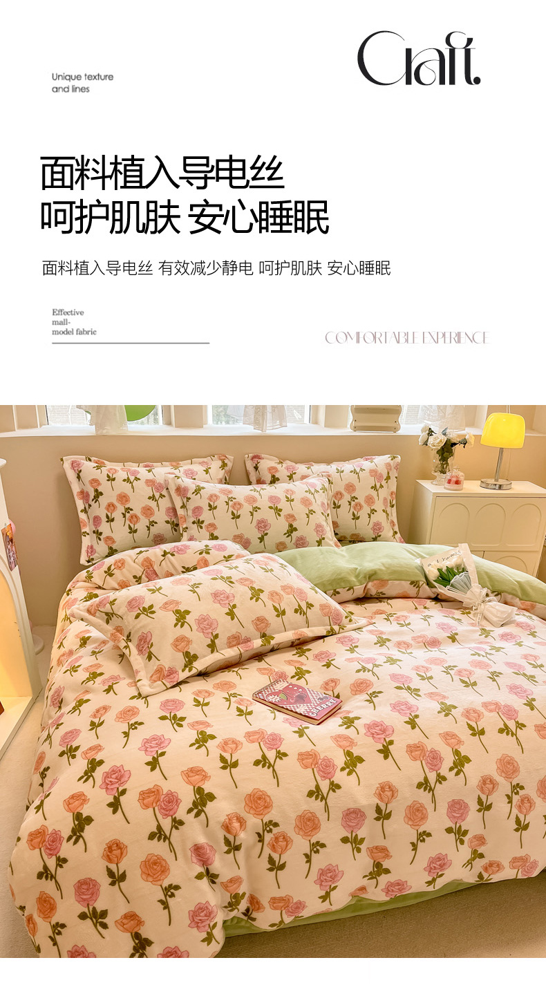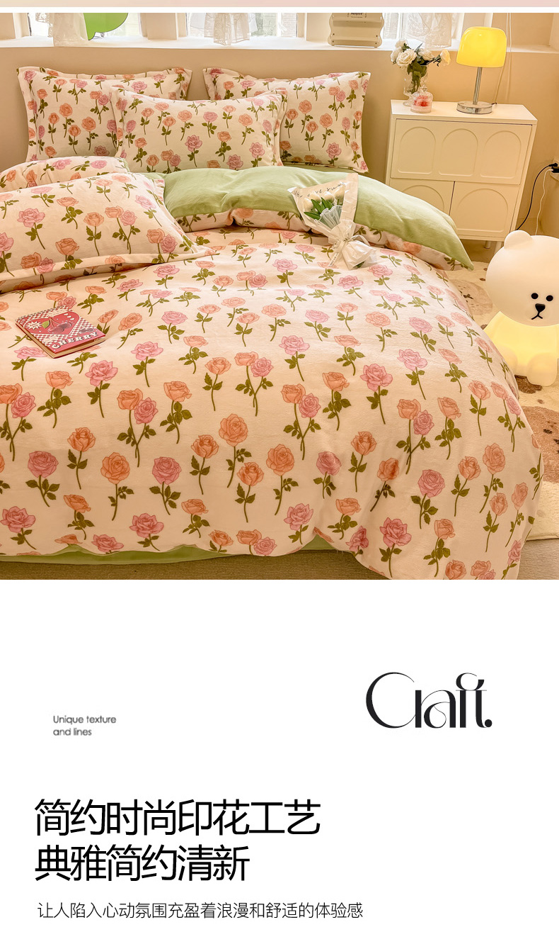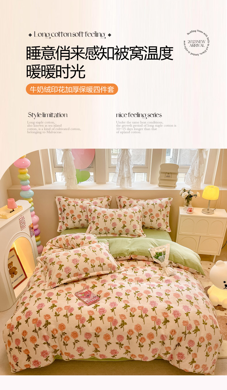 (总)眠博士 2025新款烂花牛奶绒印花牛奶绒加厚保暖简单款四件套