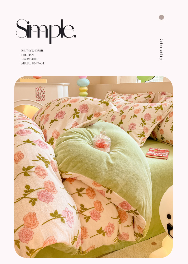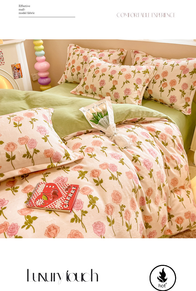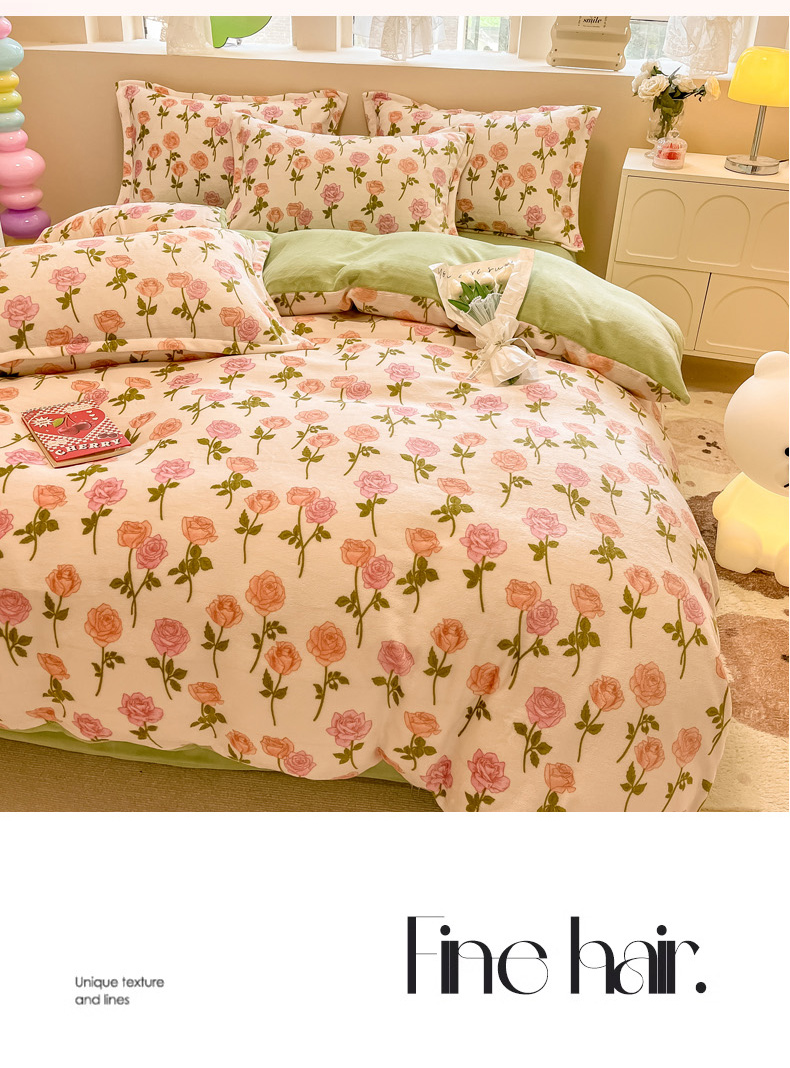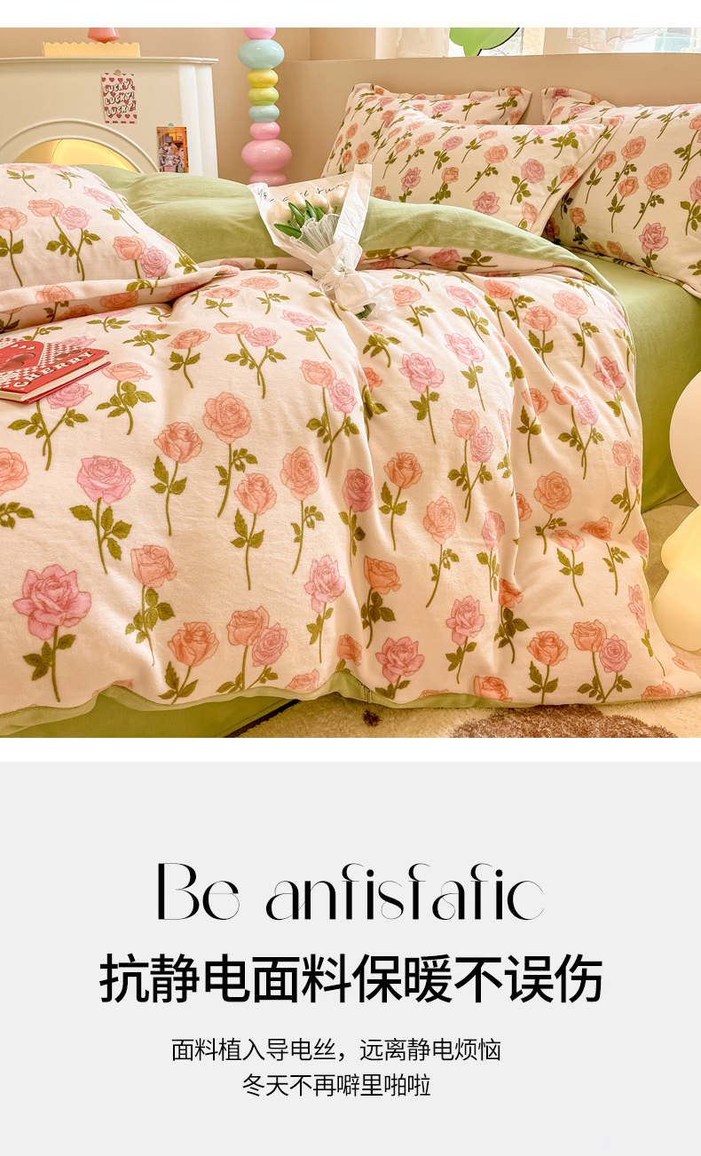 (总)眠博士 2025新款烂花牛奶绒印花牛奶绒加厚保暖简单款四件套