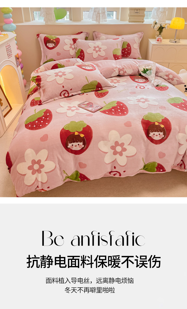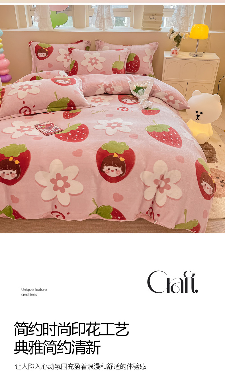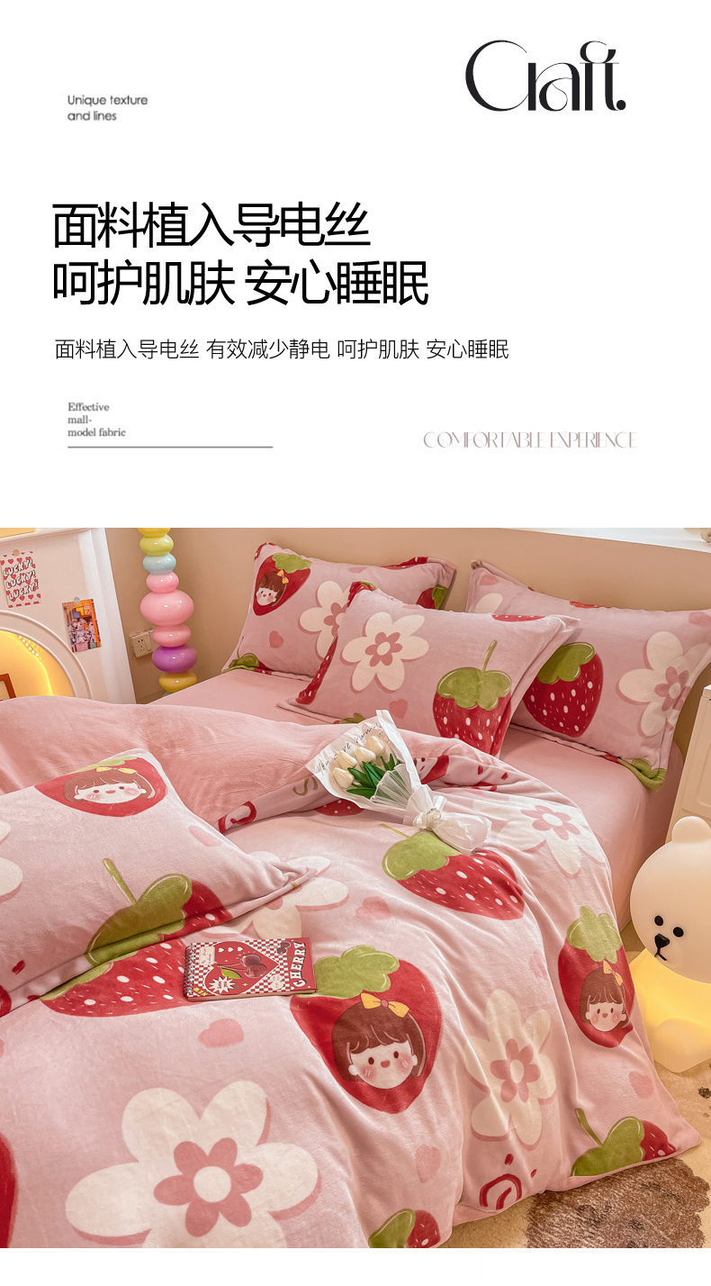 当前位置: 91家纺网 > 商品网购 > 床品套件 > 四件套 > 牛奶绒四件套 > 眠博士 2025新款烂花牛奶绒印花牛奶绒加厚保暖简单款四件套 简单款-草莓女孩