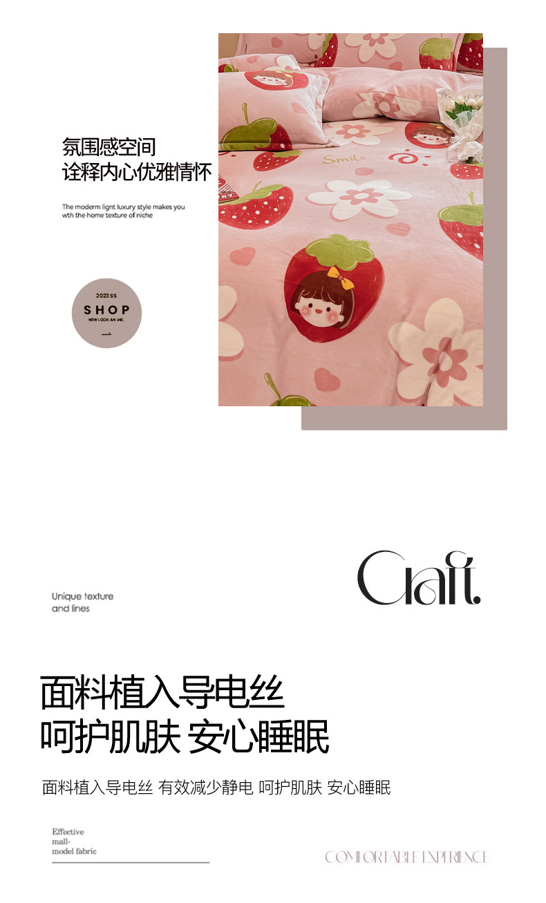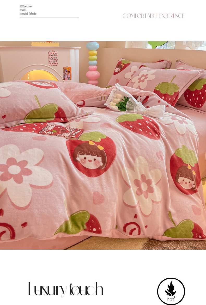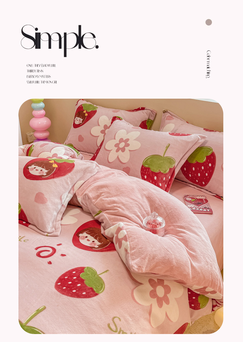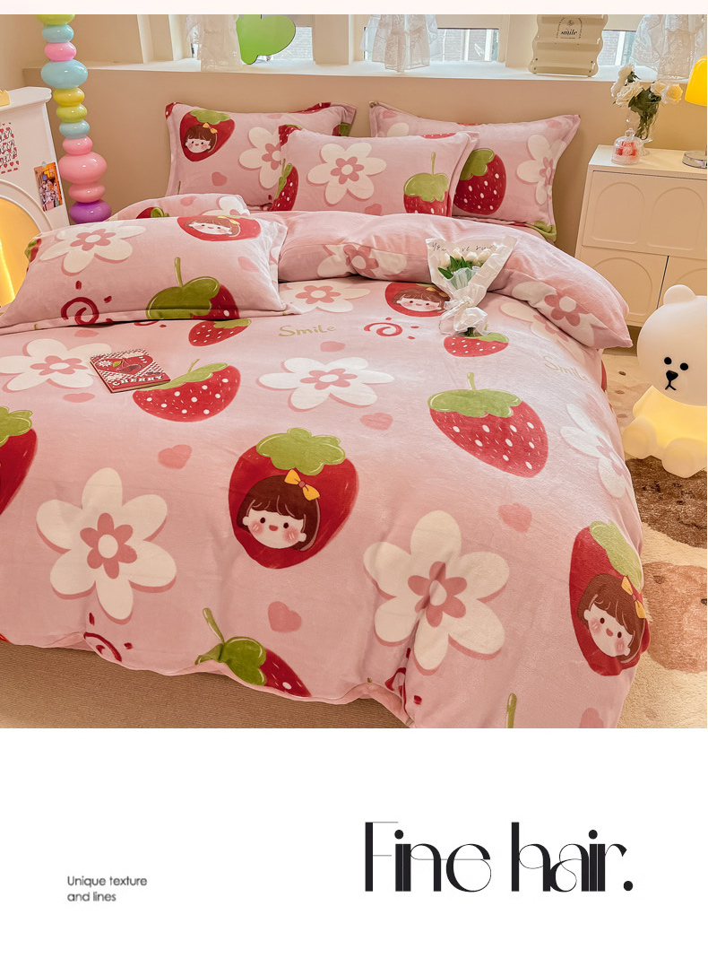 当前位置: 91家纺网 > 商品网购 > 床品套件 > 四件套 > 牛奶绒四件套 > 眠博士 2025新款烂花牛奶绒印花牛奶绒加厚保暖简单款四件套 简单款-草莓女孩