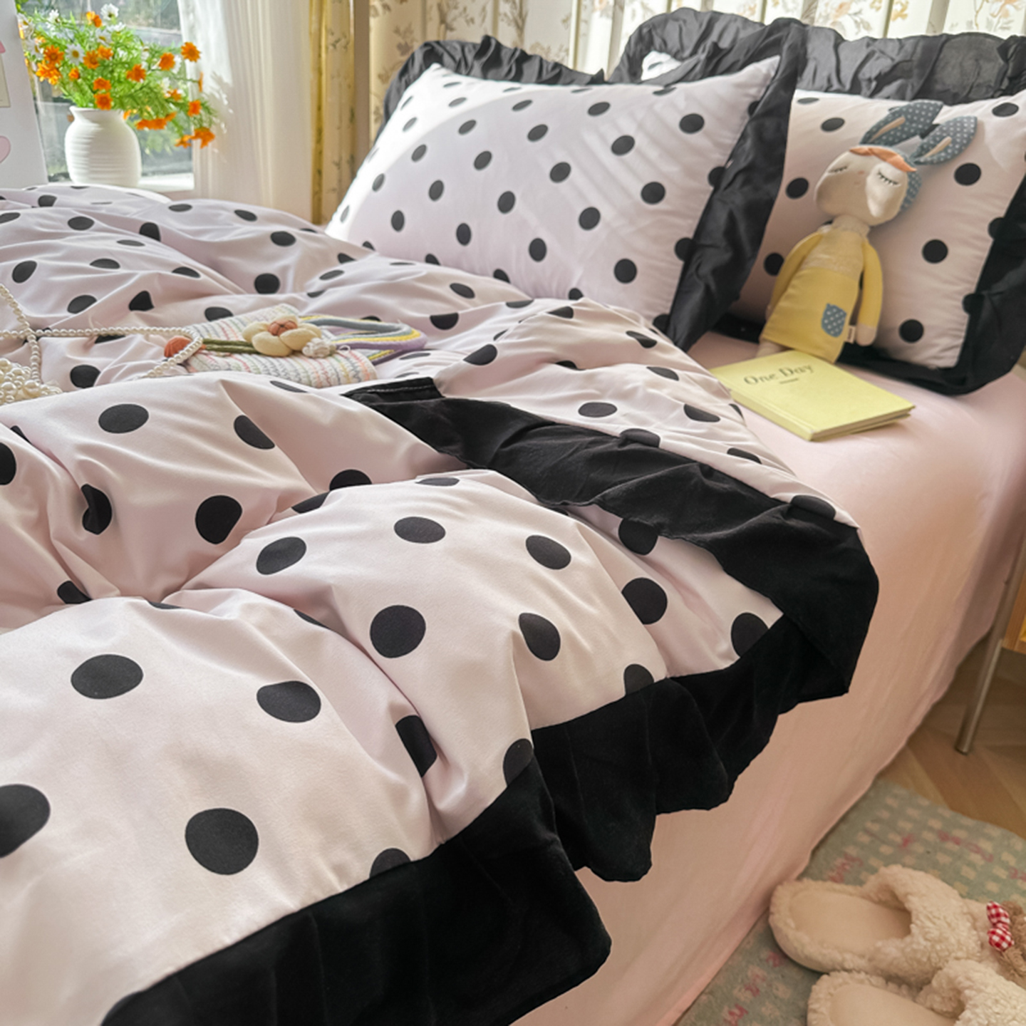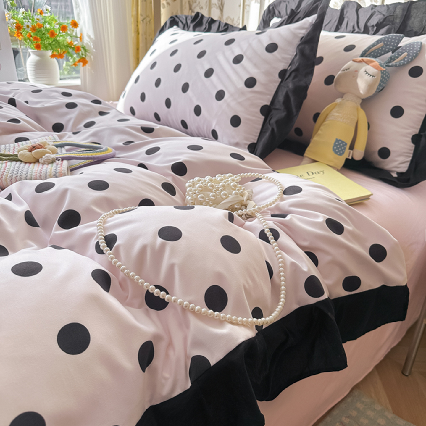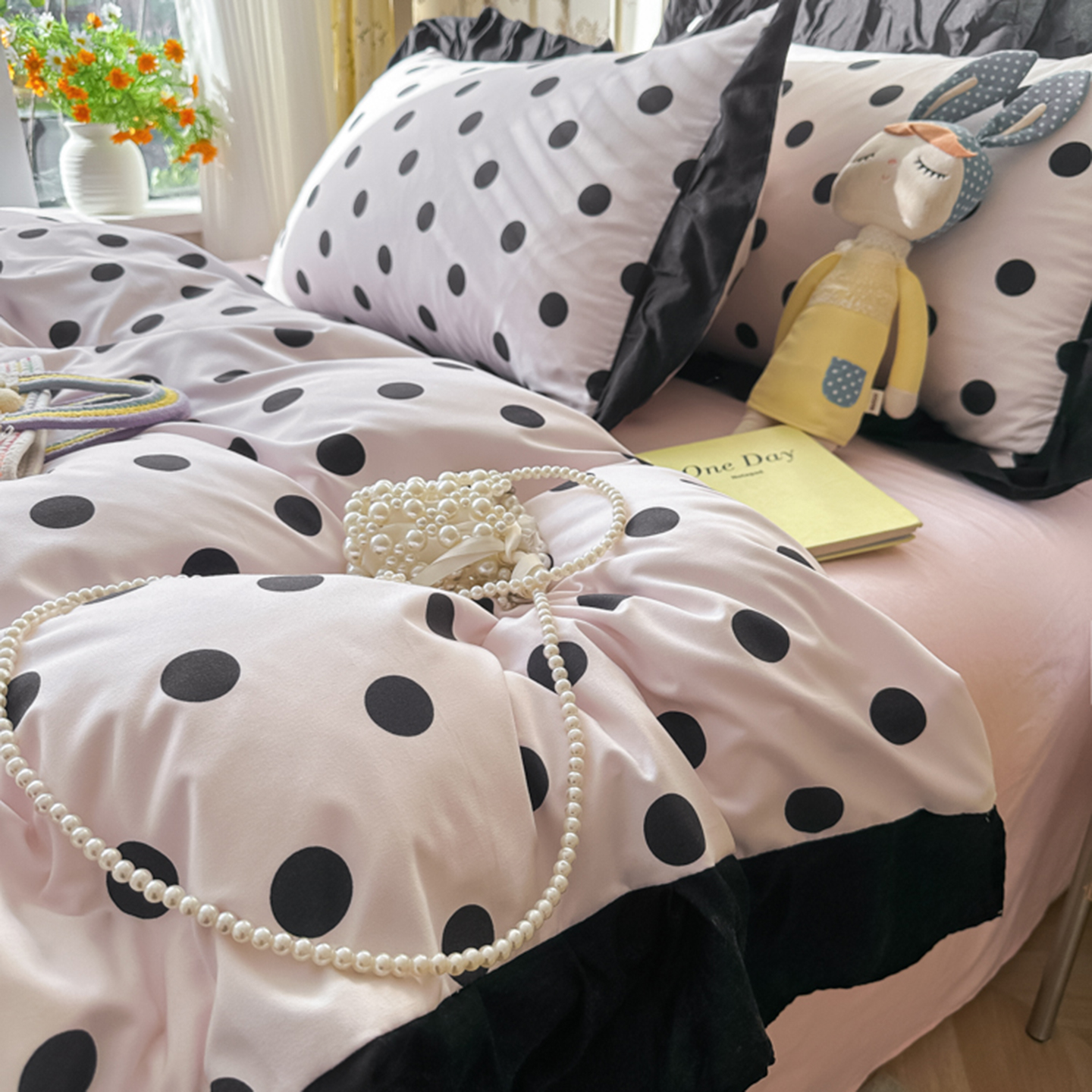 当前位置: 91家纺网 > 商品网购 > 床品套件 > 四件套 > 水洗棉四件套 > 子钦家纺 2025新款云朵棉水洗棉赫本风床单床笠床盖四件套-安娜 安娜-奶粉波点