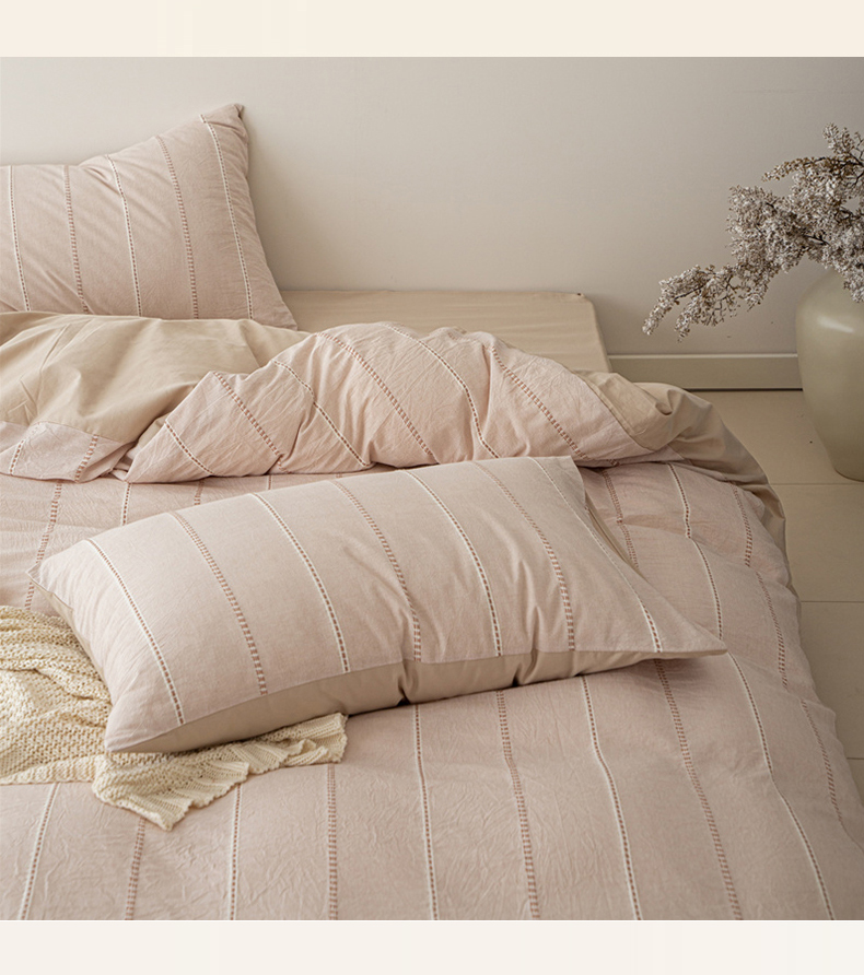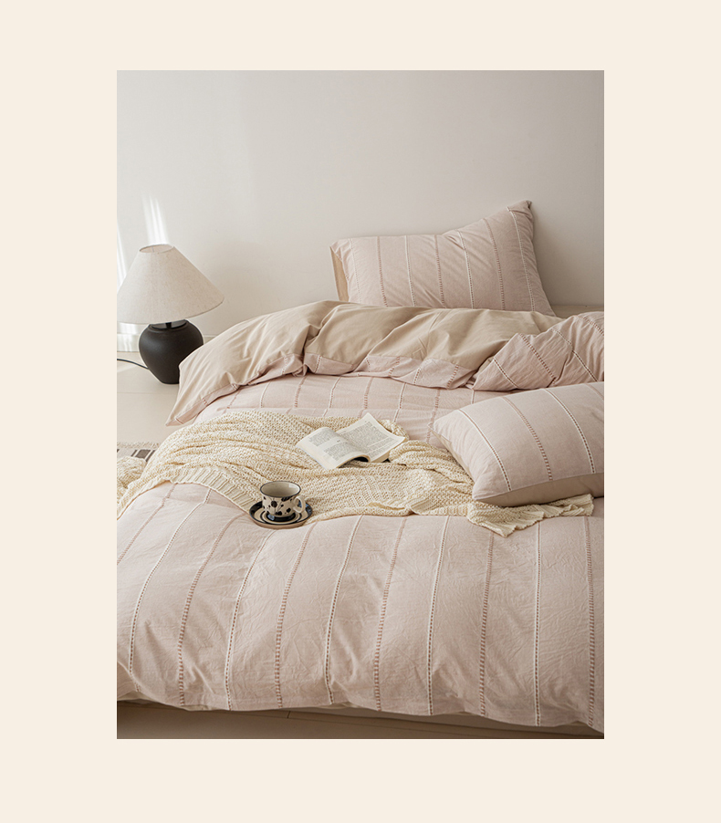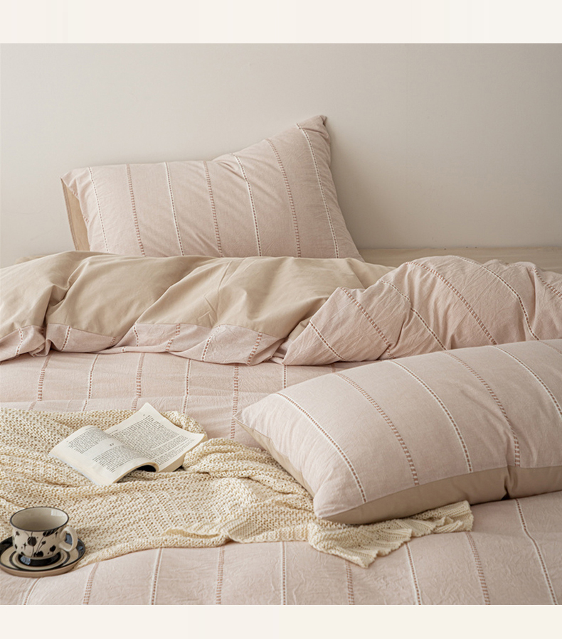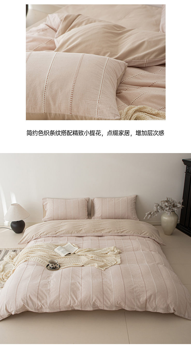 (总)棉眠 2025新款全棉色织条纹水洗小提花四件套,序曲-粉,序曲-黄,序曲-灰,序曲-蓝,序曲-米