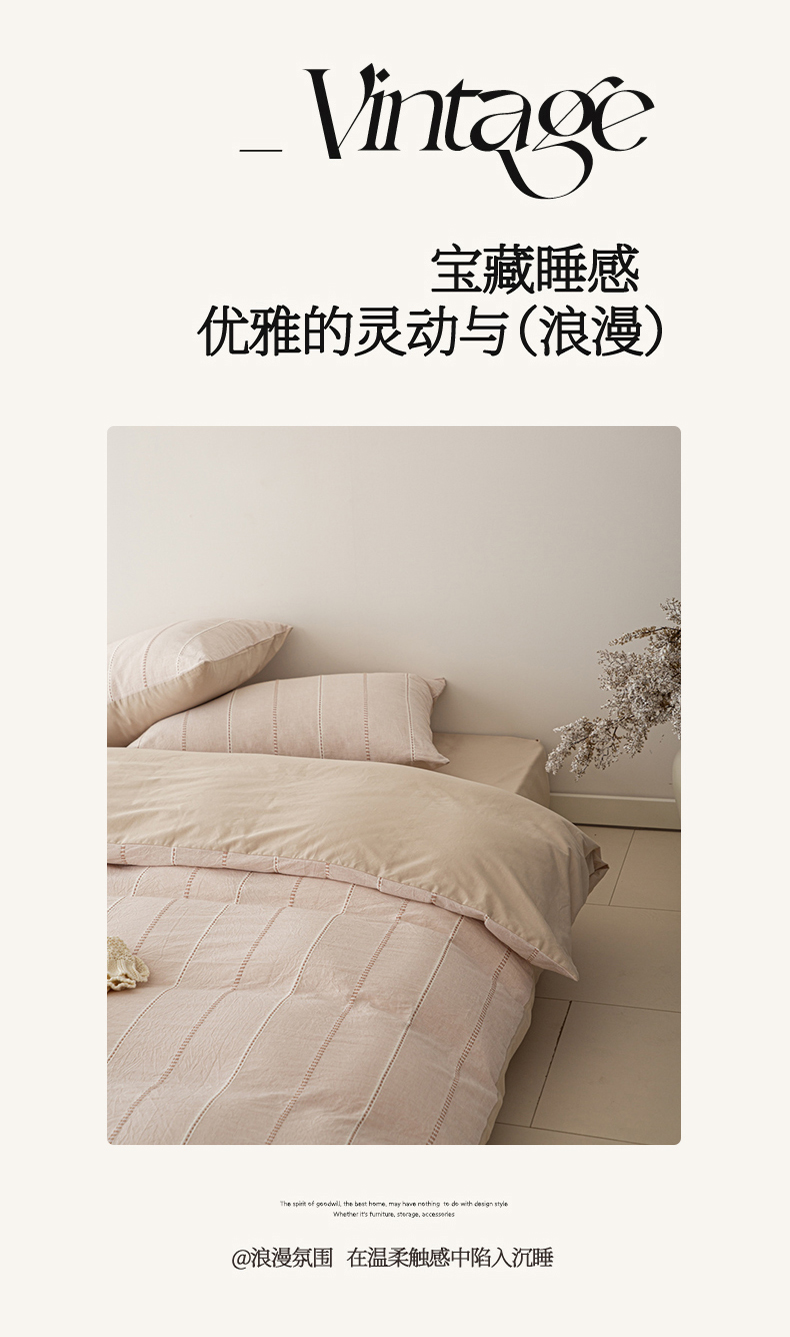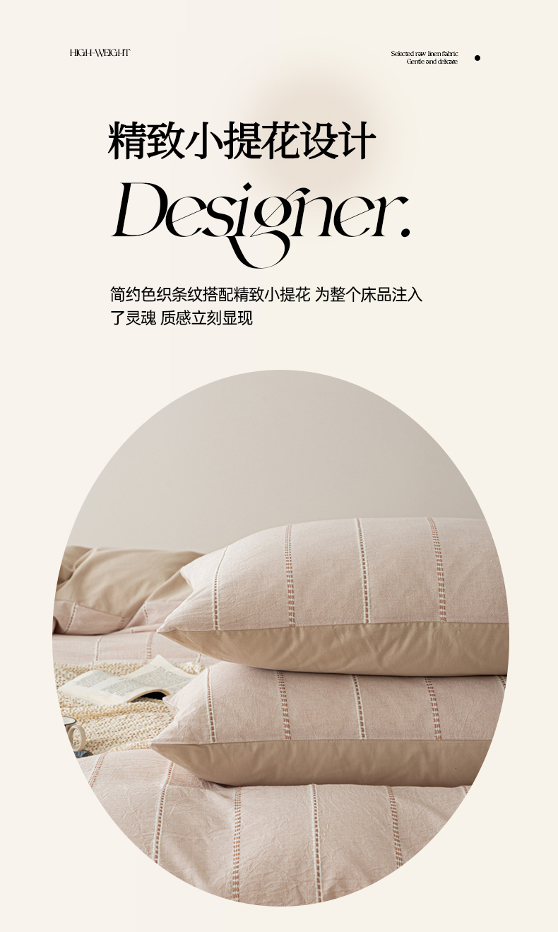 商品名称:棉眠 2025新款色织水洗小提花条纹四件套 序曲-米