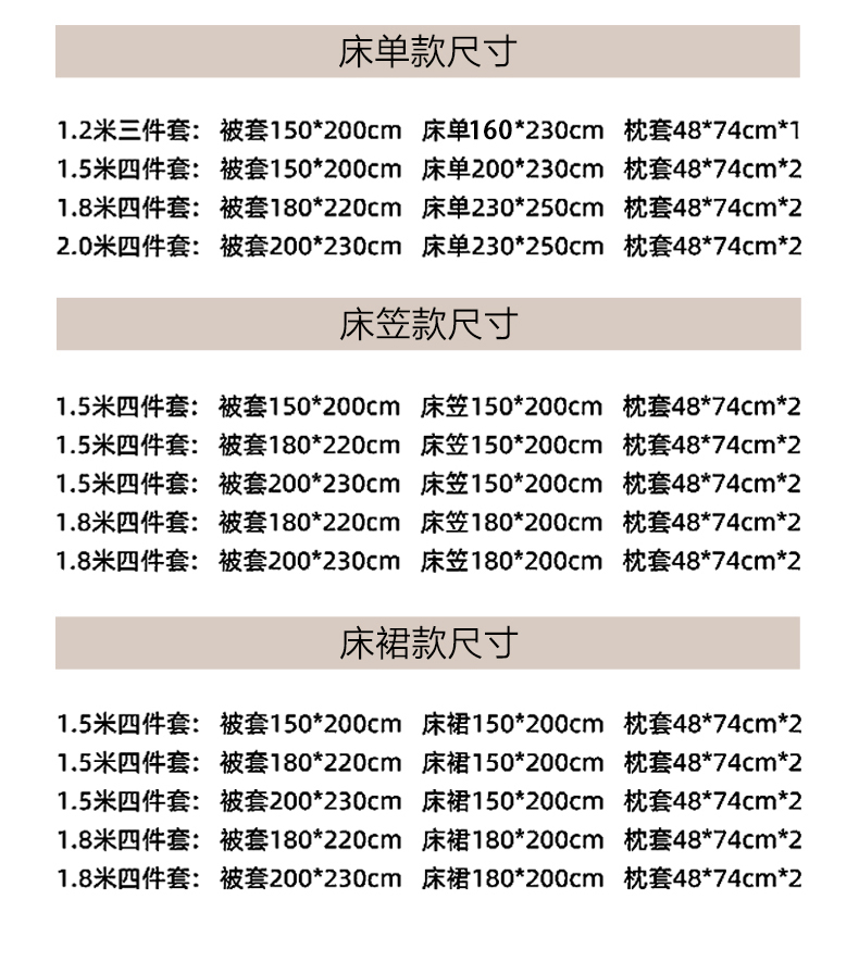 1.8m床裙四件套被套200x230cm | ¥75.00 |