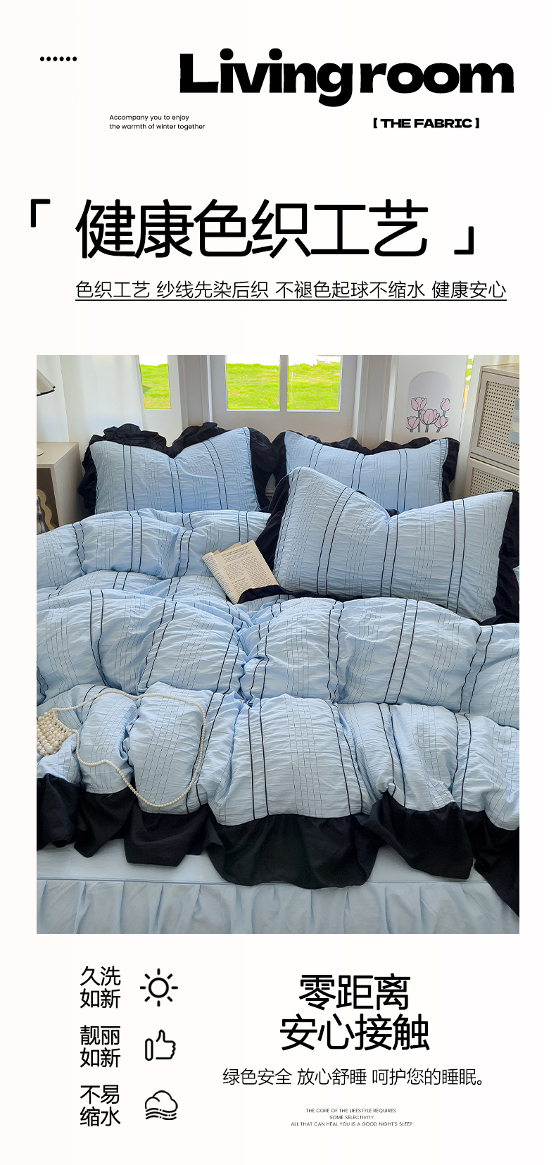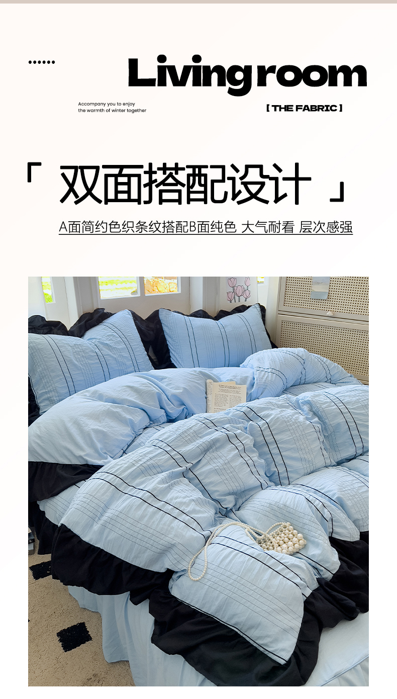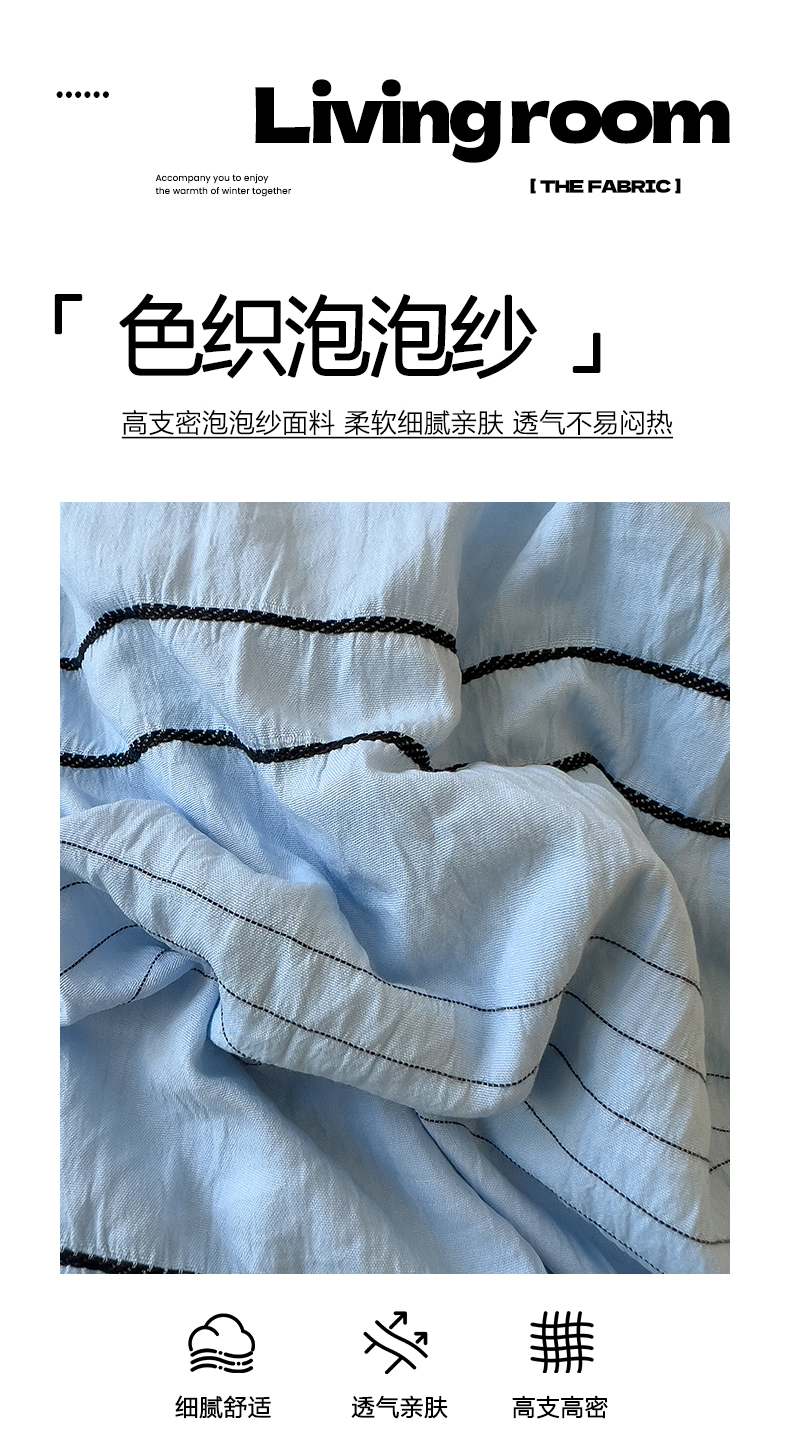 当前位置: 91家纺网 > 商品网购 > 床品套件 > 四件套 > 化纤普通四件套 > 优卡迪家纺馆 2025新款色织泡泡纱花边四件套 海盐蓝