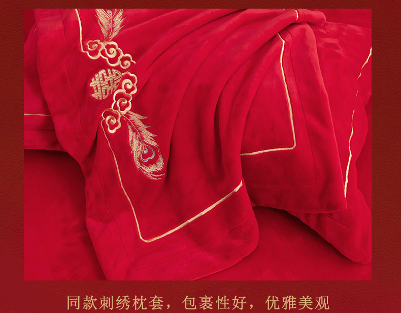 (总)千禧家纺 2024新款双面长绒棉磨毛加厚保暖绣花婚庆套件,大喜大吉,鸿运贺禧,欢乐喜事,欢喜,美满爱情,喜上眉梢,喜约,相伴一生,挚爱