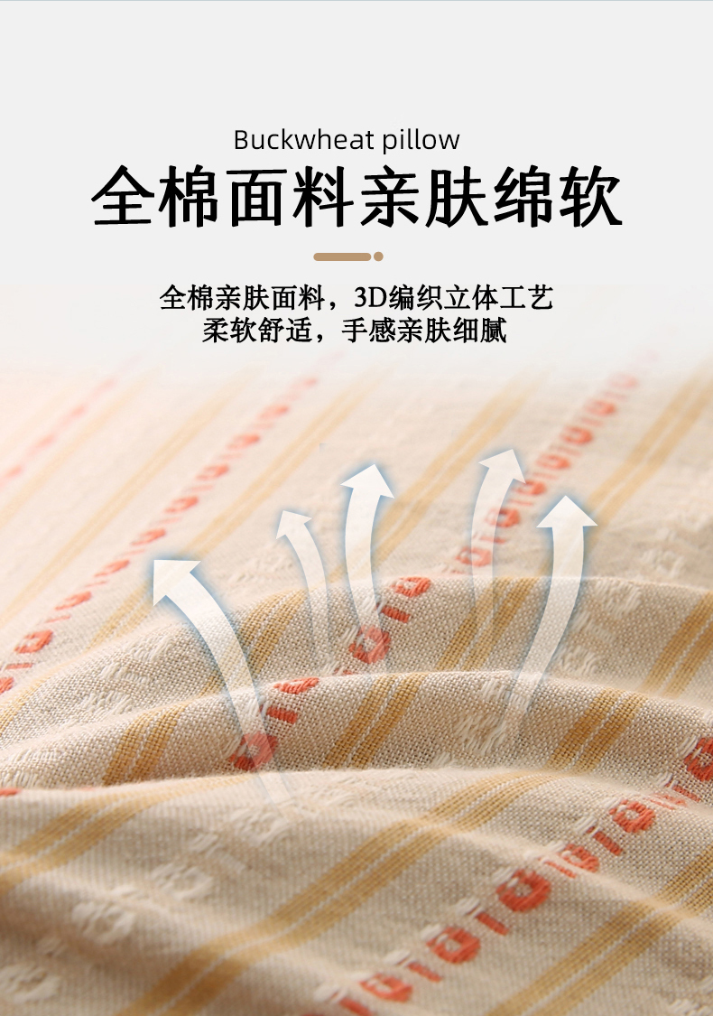 商品名称:金牛枕芯 2025新款全棉立体条纹荞麦糖果枕枕头枕芯 浅绿