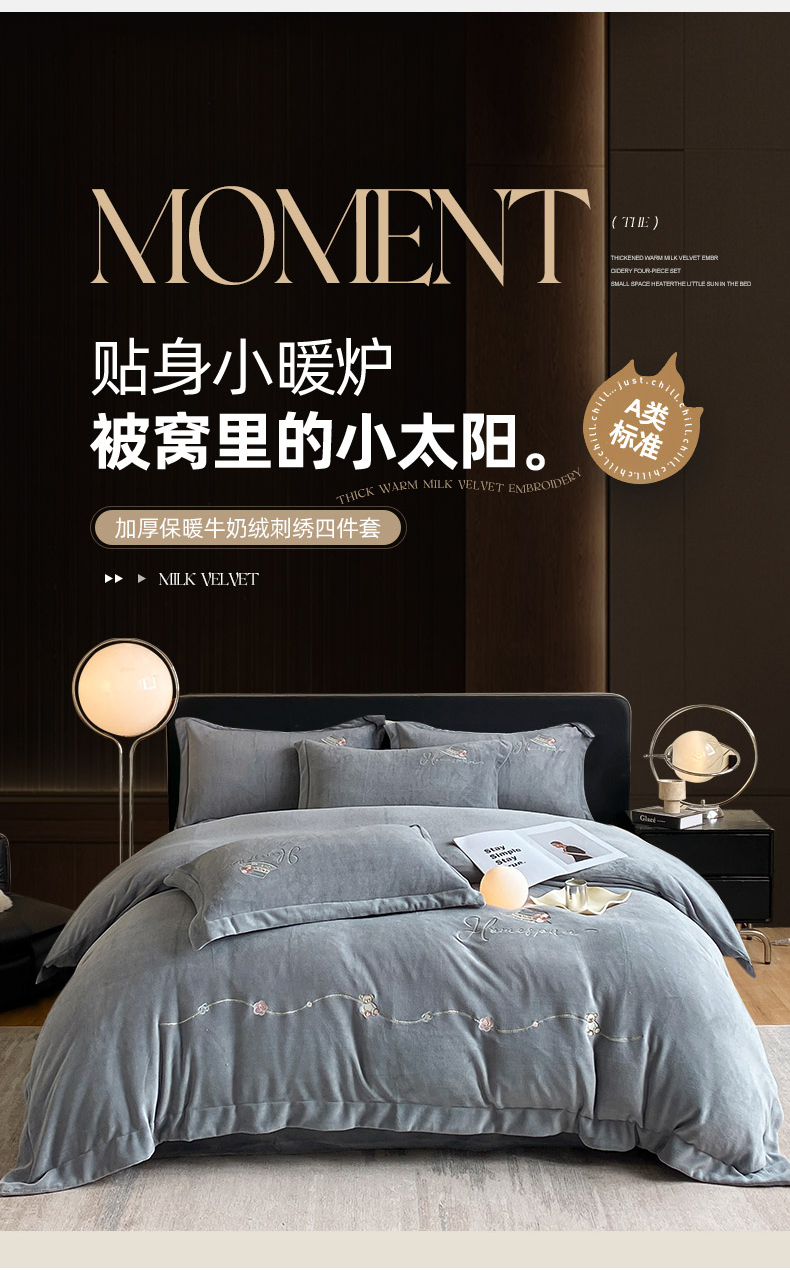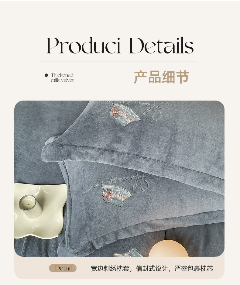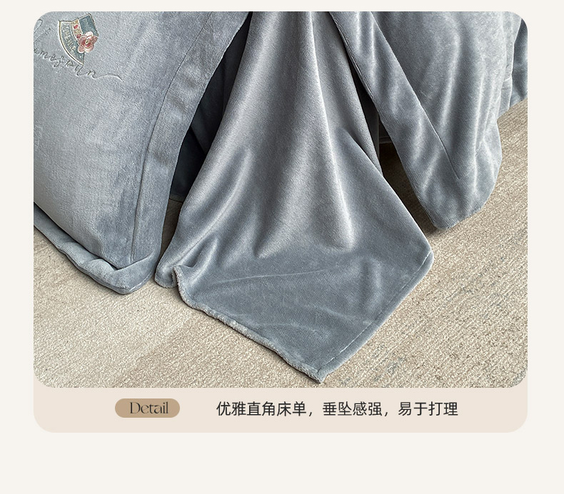 商品名称:绒世界 2025新款秋冬加厚公主日记牛奶绒四件套 高级灰
