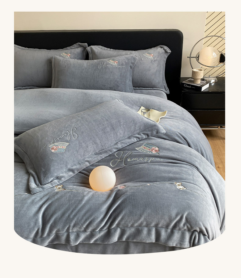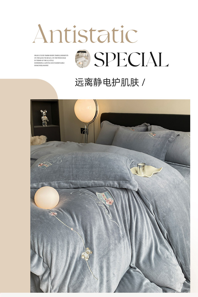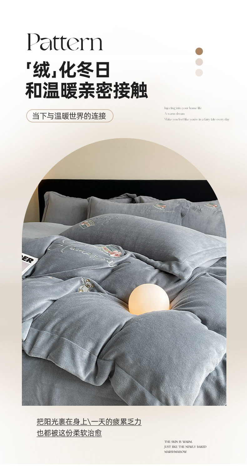 绒世界 2025新款秋冬加厚公主日记牛奶绒四件套 高级灰