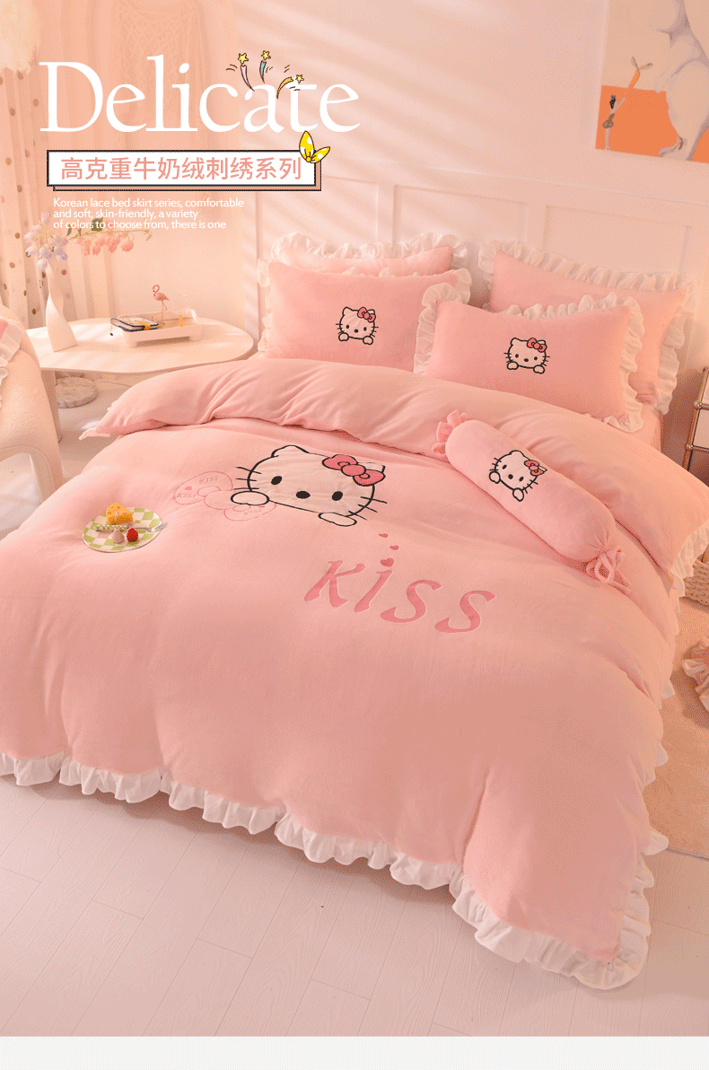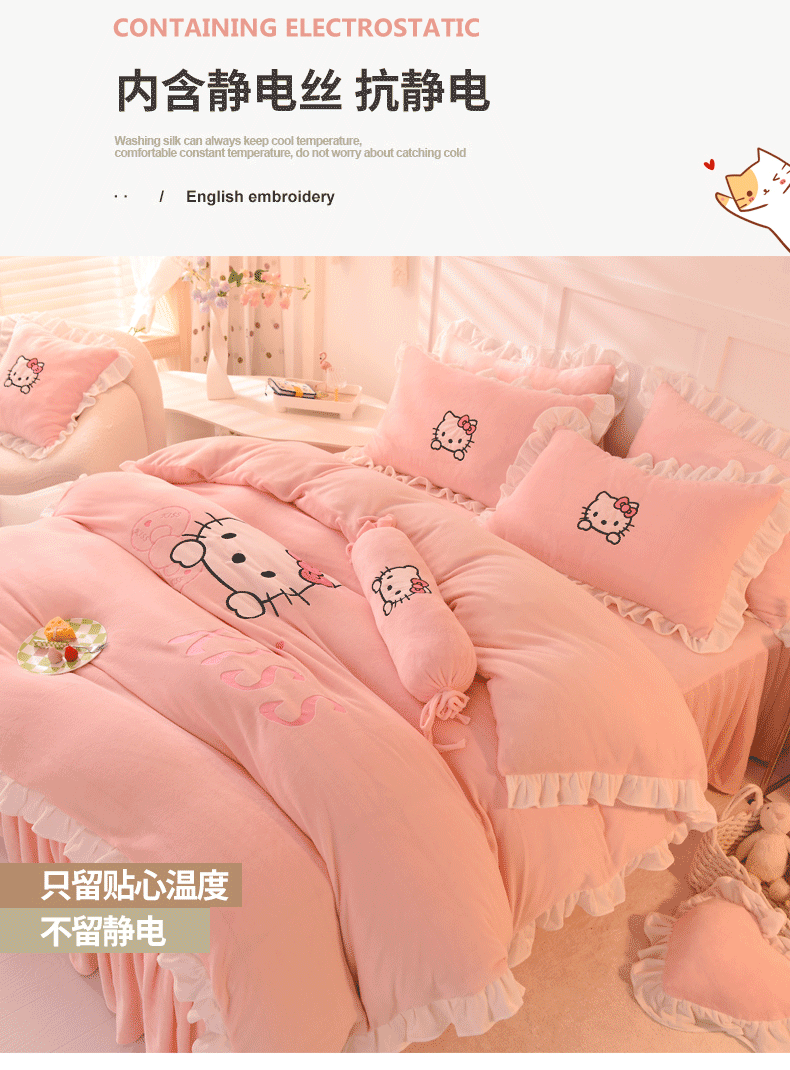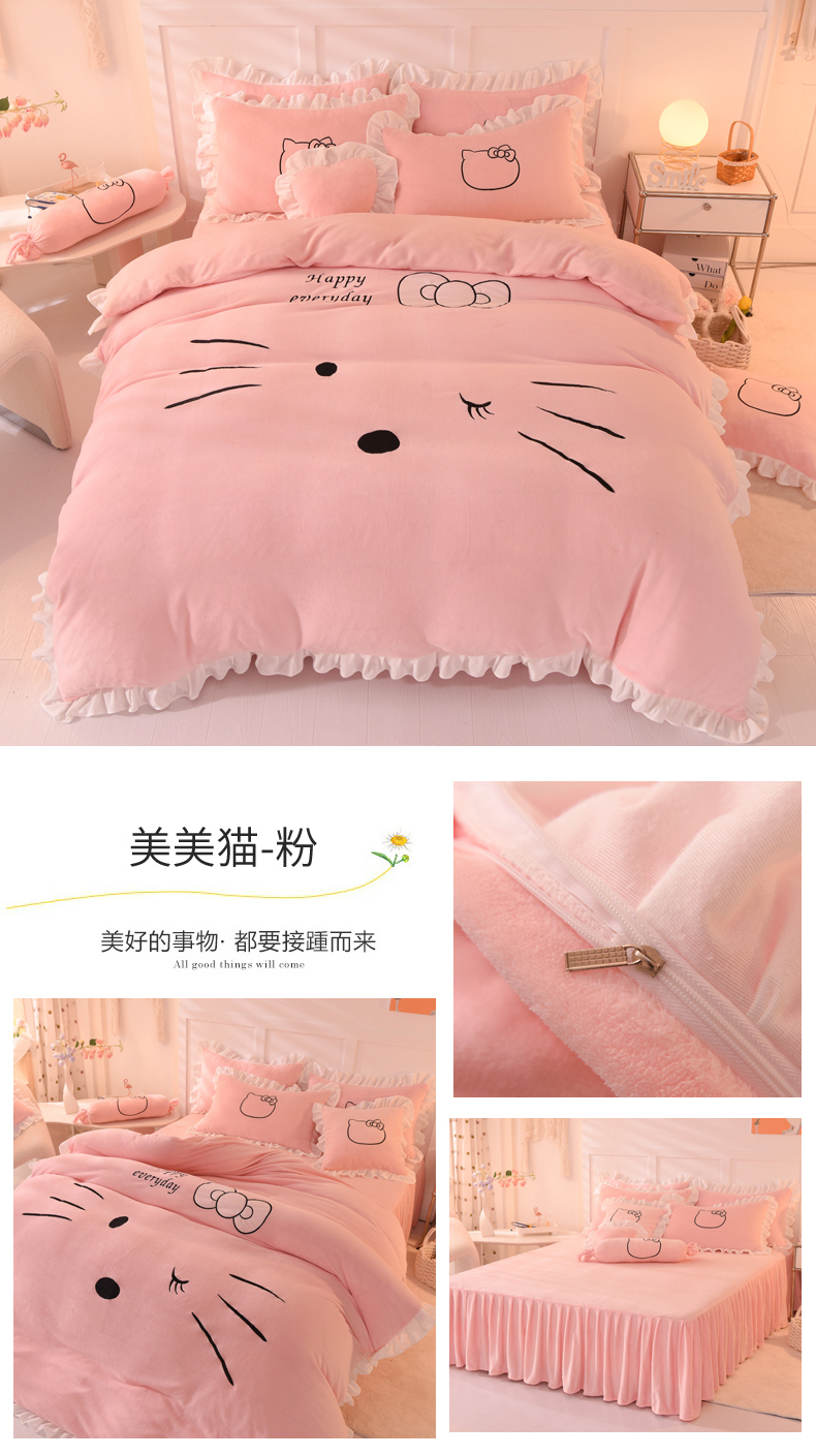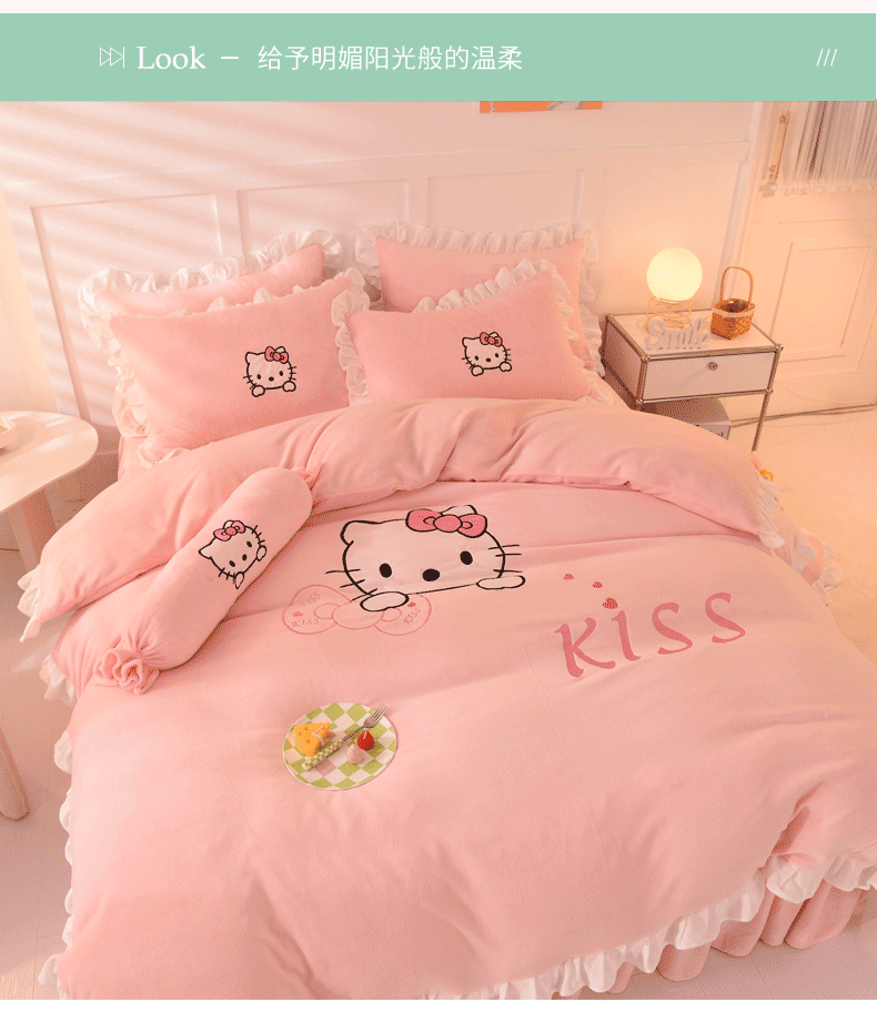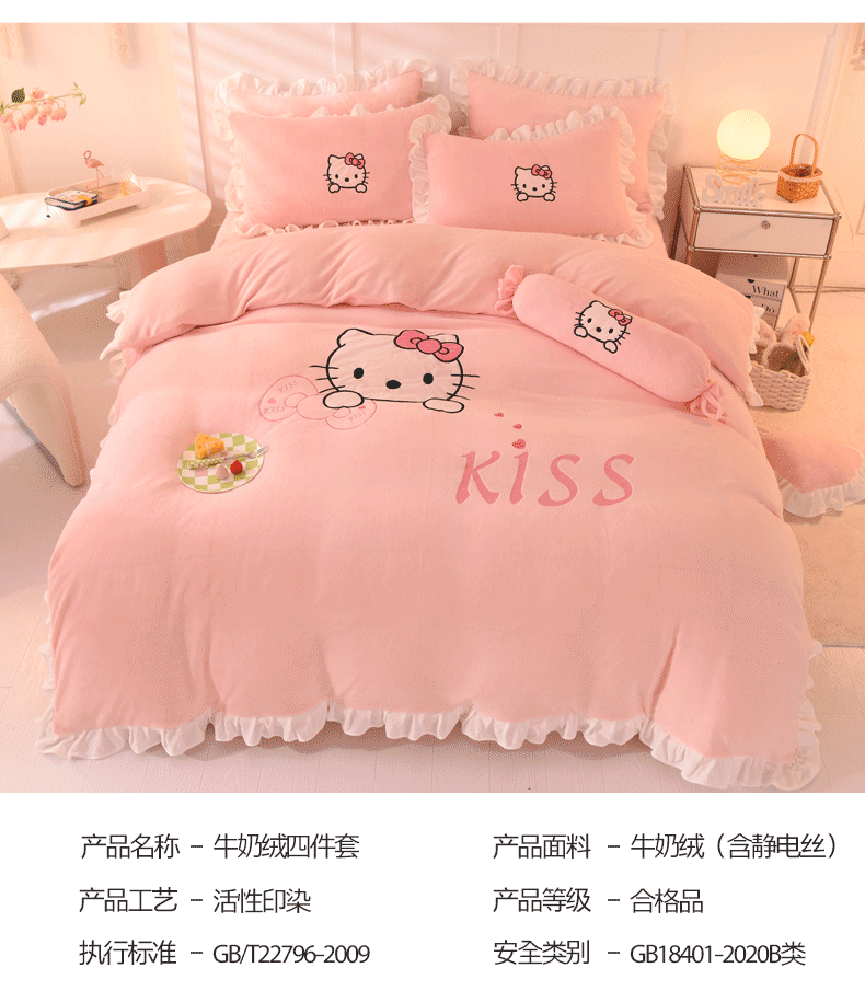 当前位置: 91家纺网 > 商品网购 > 床品套件 > 四件套 > 牛奶绒四件套 > 丝印良品 2025新款高端牛奶绒卡通刺绣牛奶绒四件套 kiss猫-粉