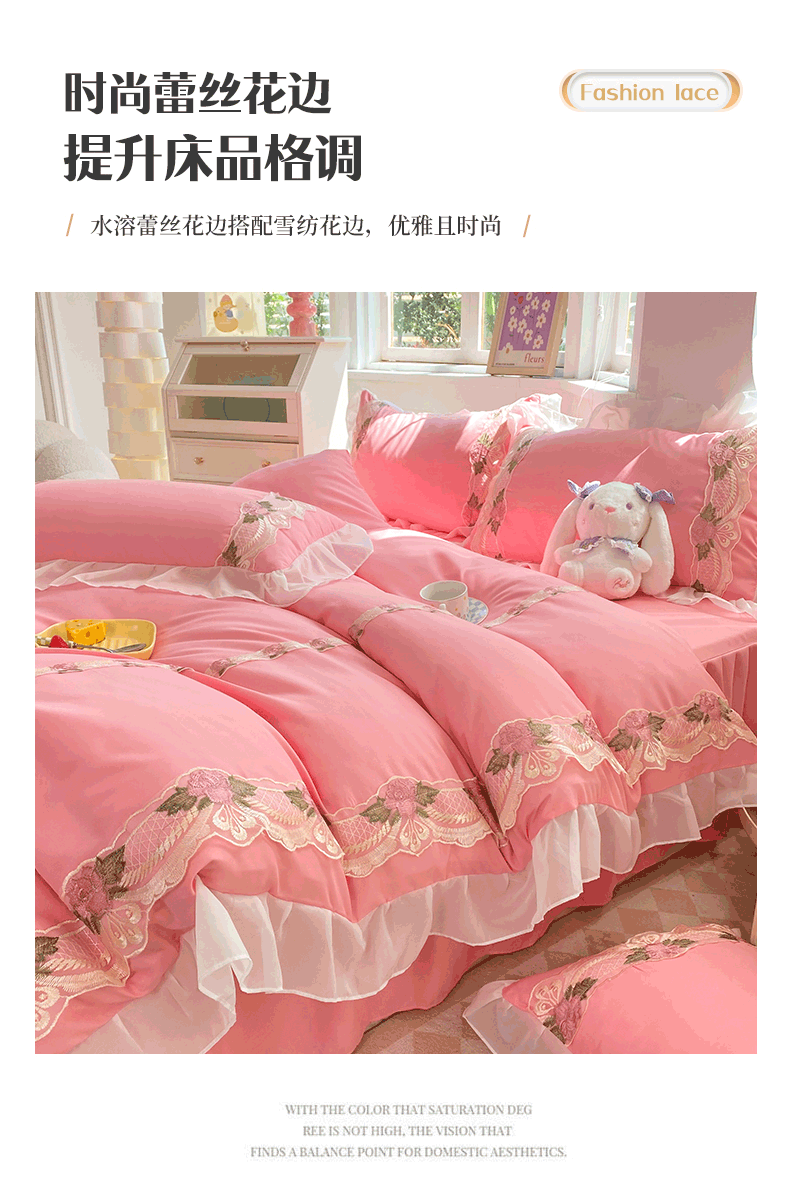当前位置: 91家纺网 > 商品网购 > 床品套件 > 四件套 > 化纤普通四件套 > 后庭寝室 2025新款韩版雪纺磨毛蕾丝纯色床裙四件套-遇见公主 遇见公主-浅紫