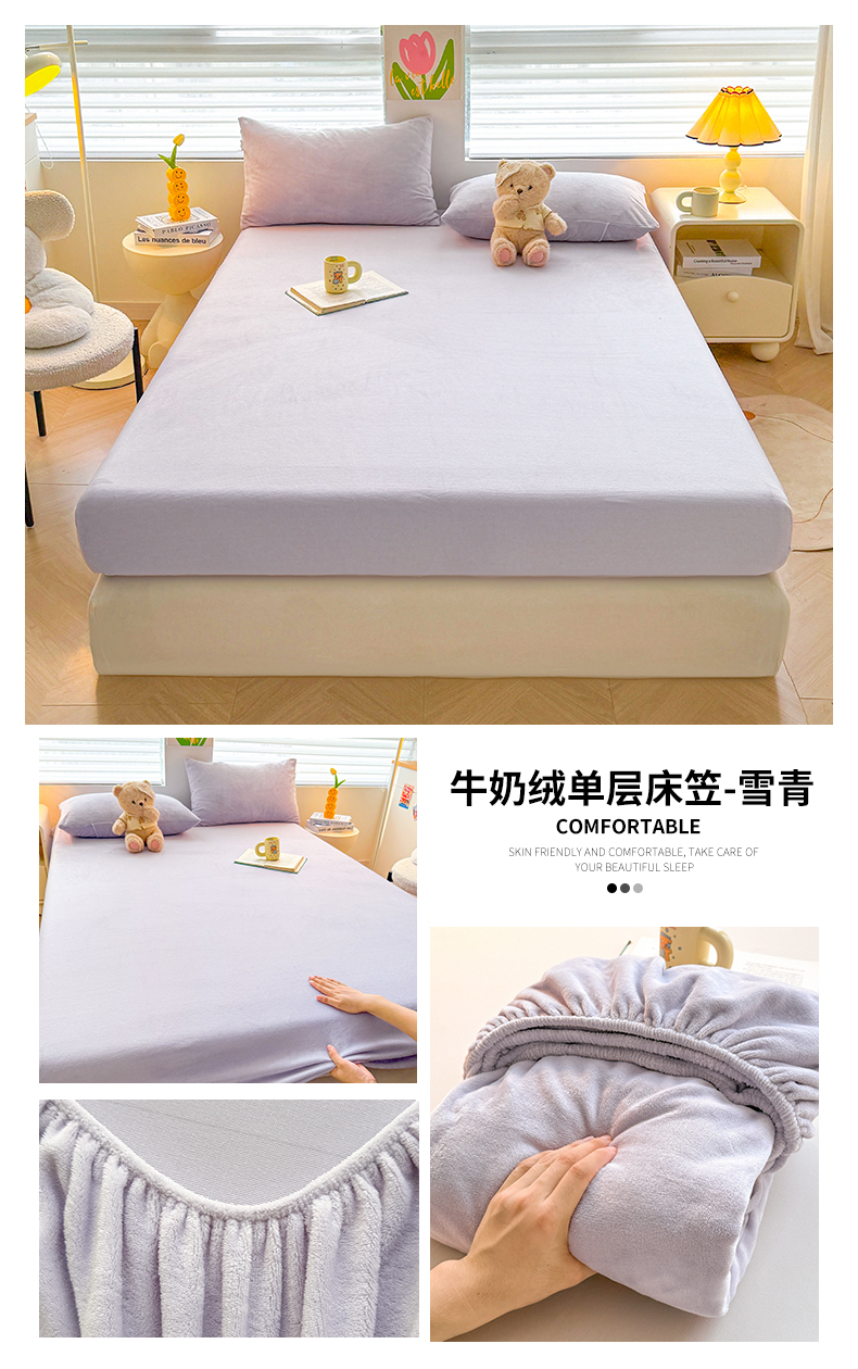 • 91家纺网 家纺一手货源 找家纺 雯豆家纺 2025新款单层高克重牛奶绒纯色床笠素色床垫保护套 牛奶绒单层床笠-嫩粉