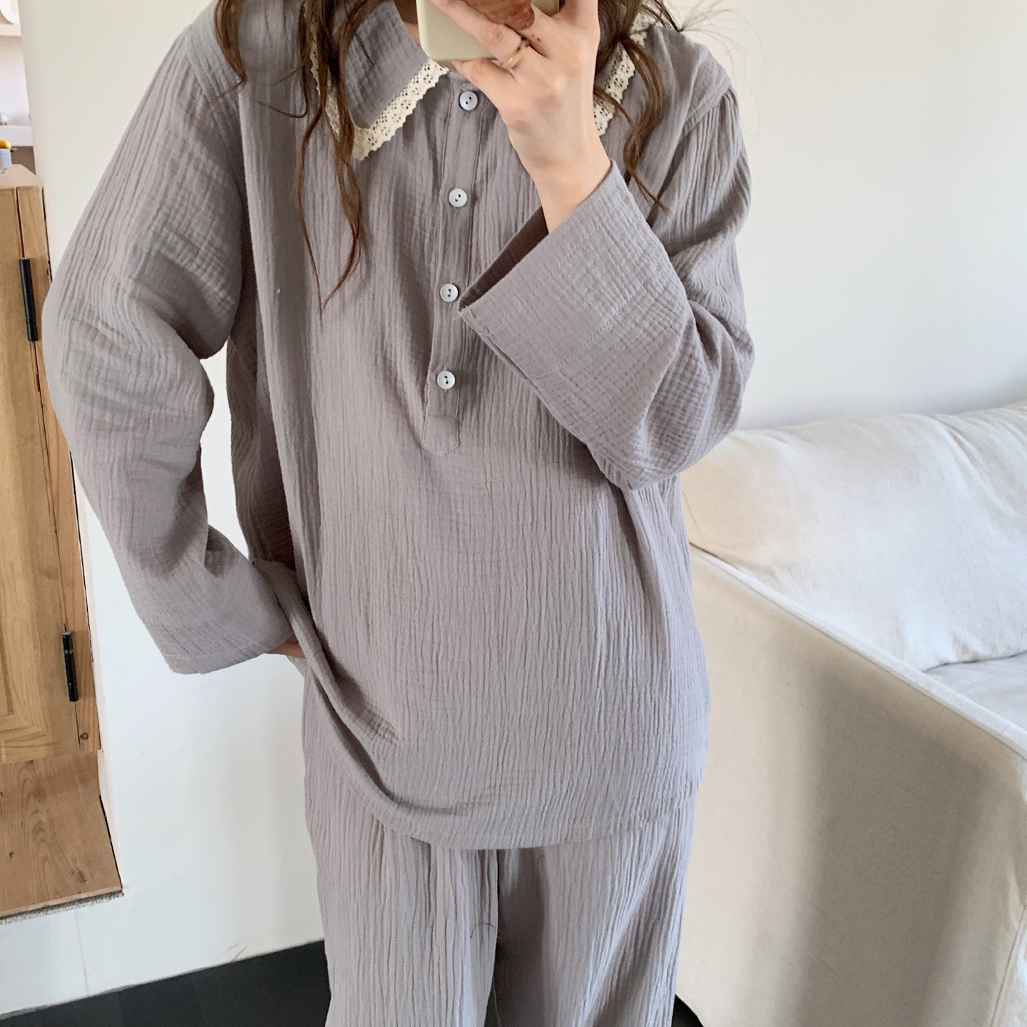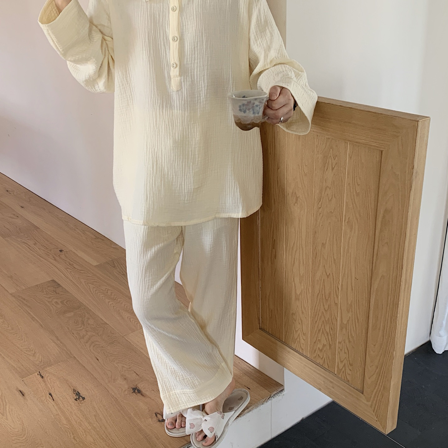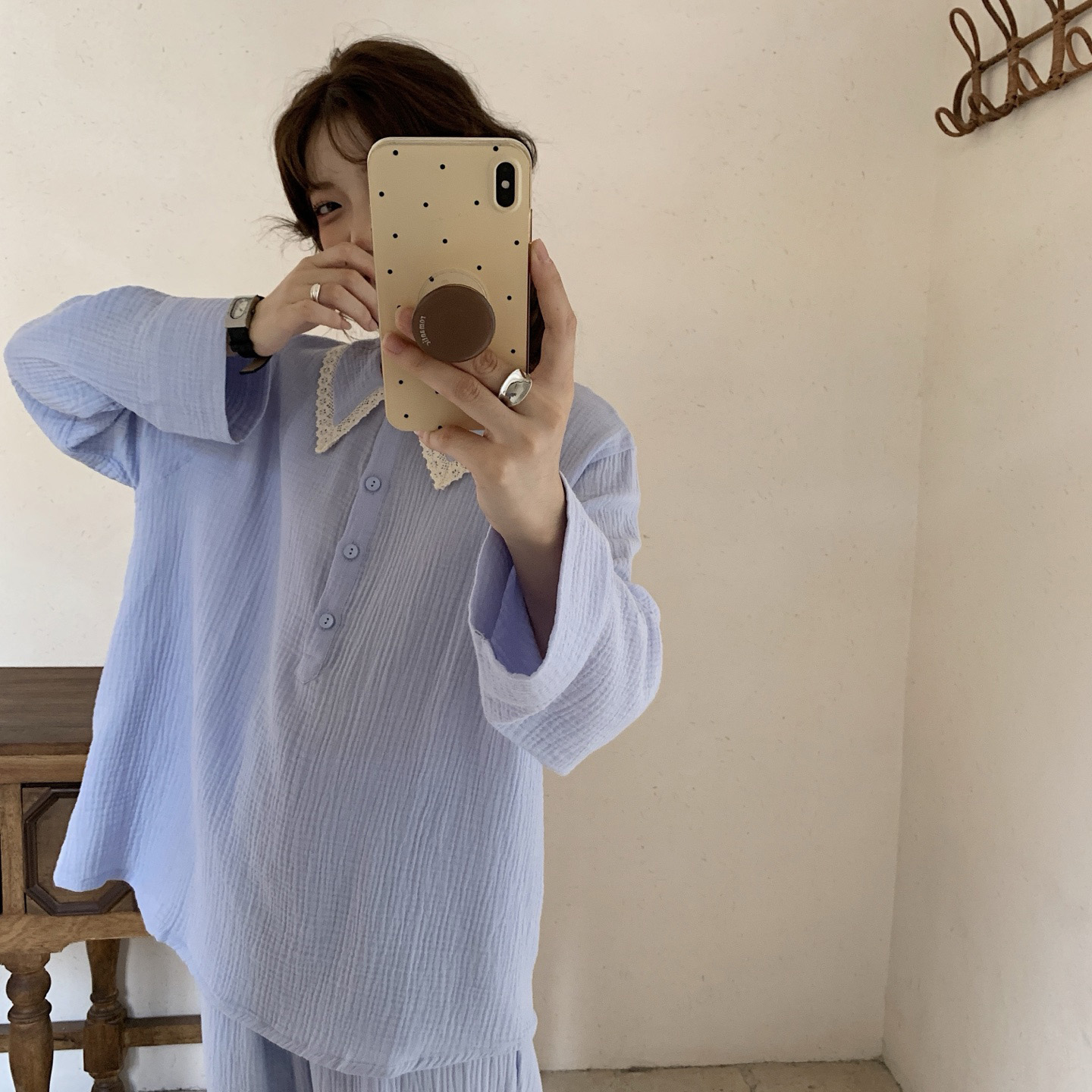 商品名称:妍景家居生活馆 2025新款韩系-25153森系娃娃领套装 蓝色