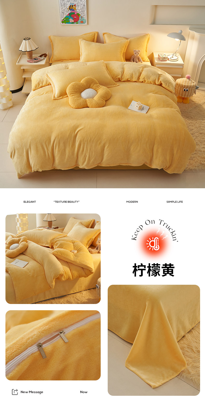 当前位置: 91家纺网 > 商品网购 > 床品套件 > 四件套 > 牛奶绒四件套 > 2025新款多巴胺小红书纯色牛奶绒四件套牛奶绒被套跨境定制-风格二 柠檬黄