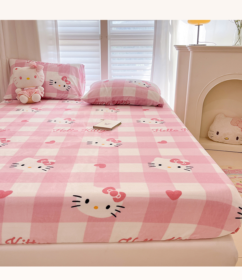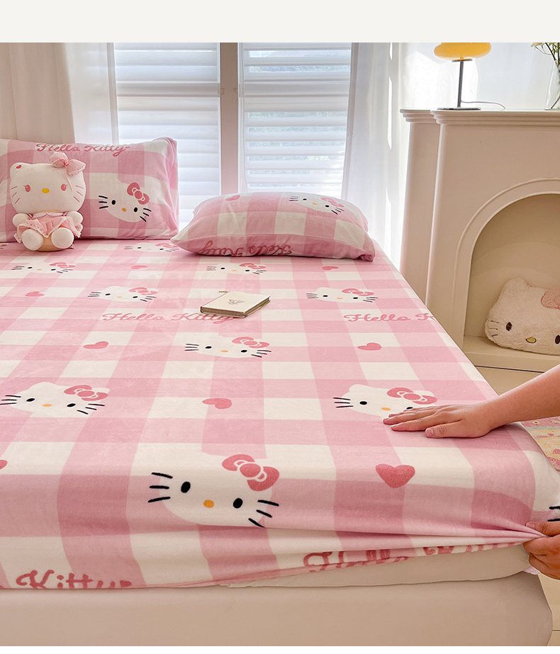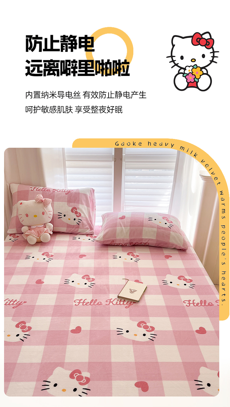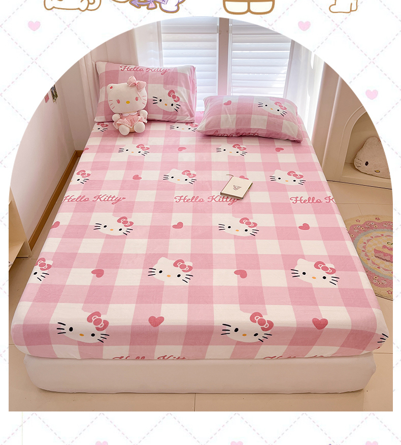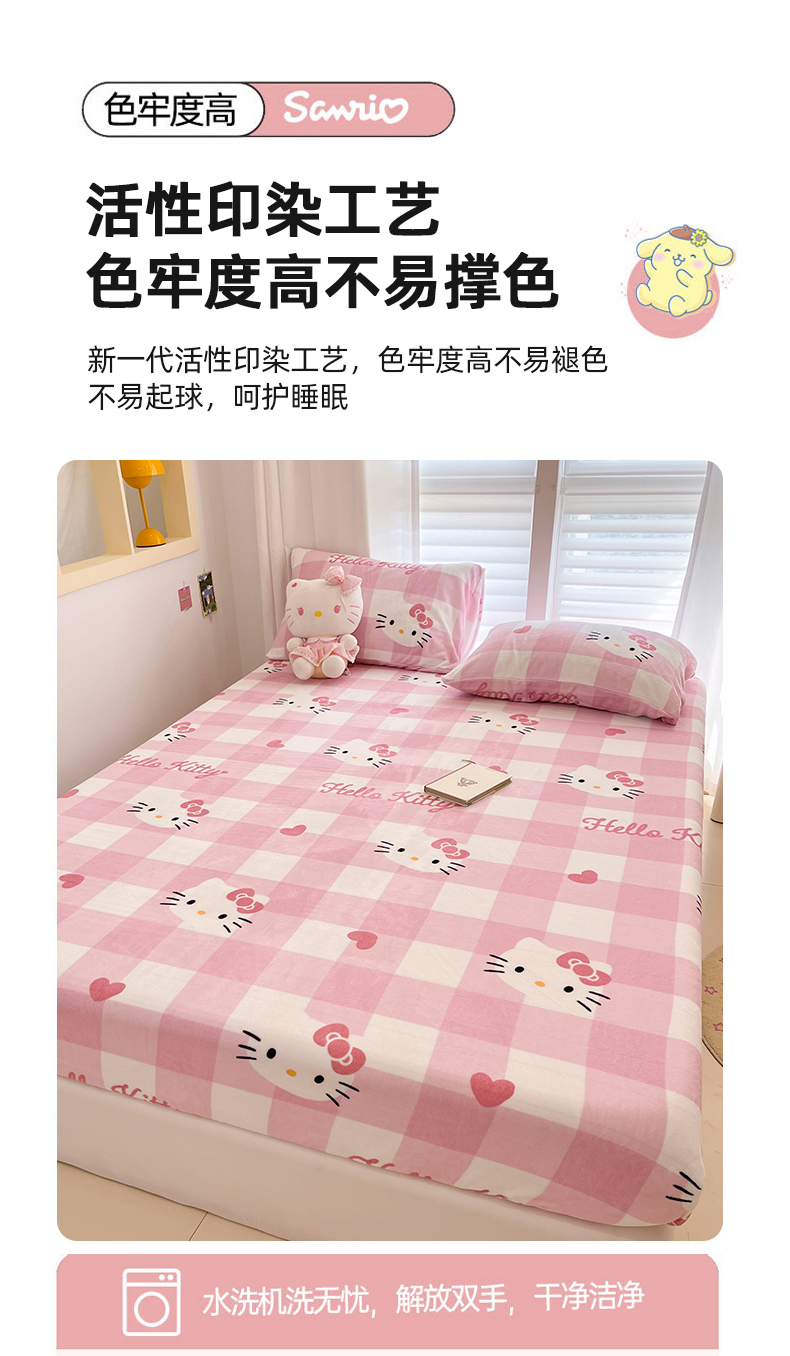 金爱家 2025新款三丽鸥牛奶绒床笠单床笠床笠单件 绒单品-粉梦kt