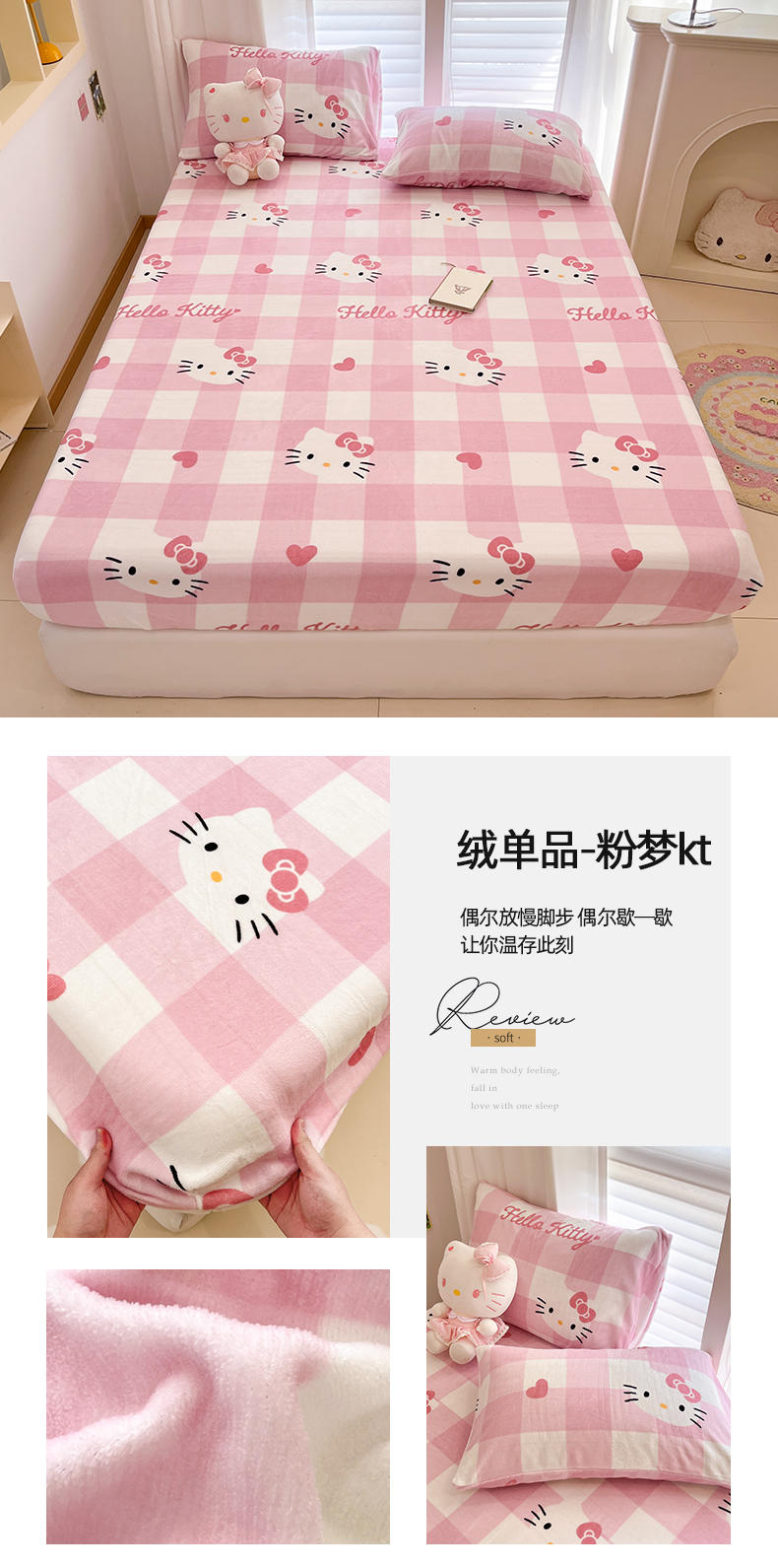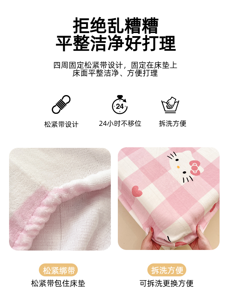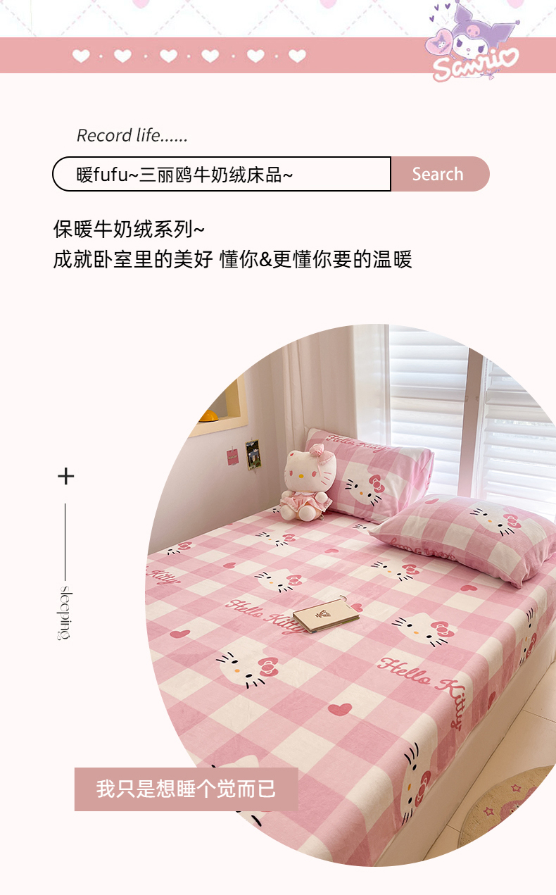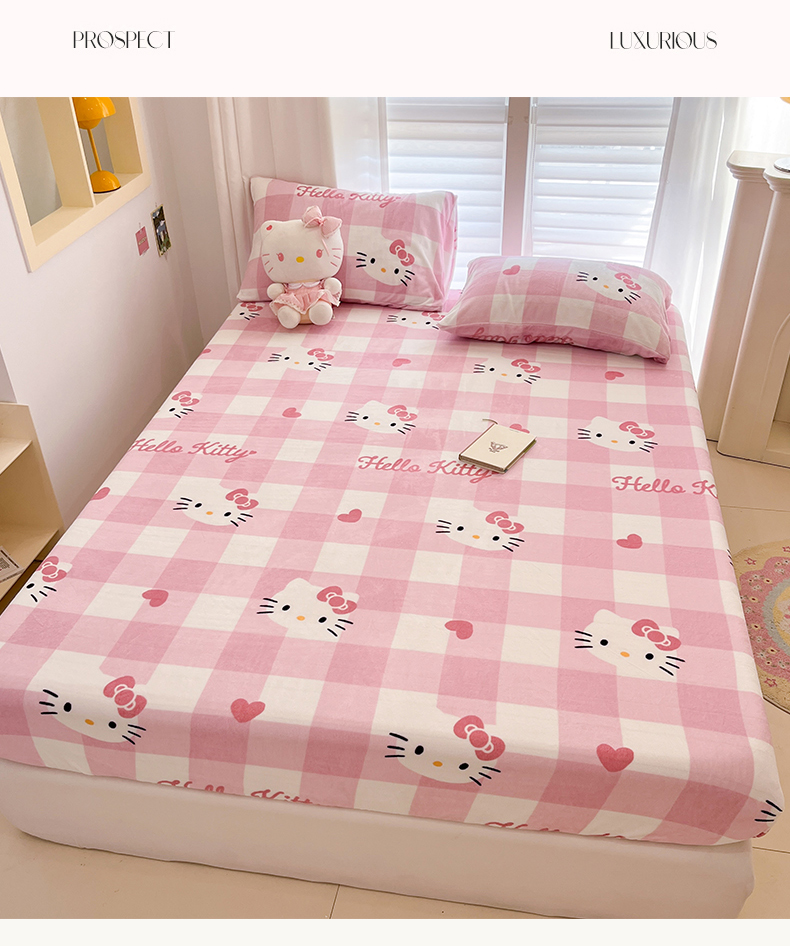 金爱家 2025新款三丽鸥牛奶绒床笠单床笠床笠单件 绒单品-粉梦kt