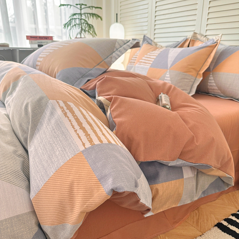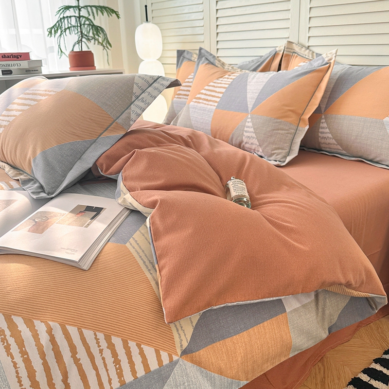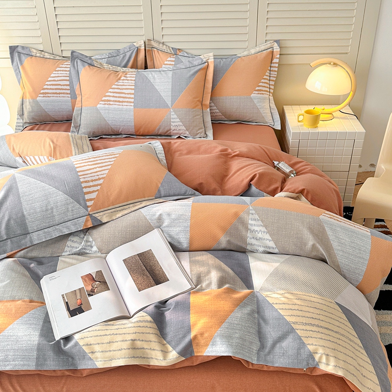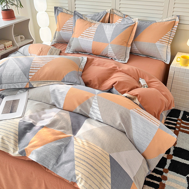 简约家纺 2025新款全棉磨毛印花单品床单 创意几何-桔,创意几何-桔