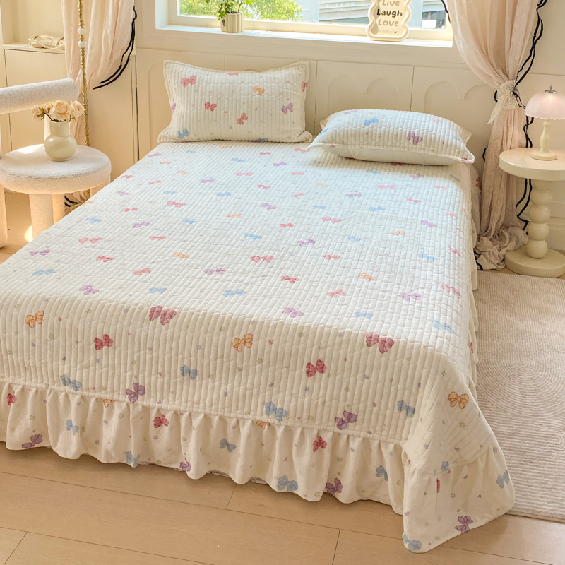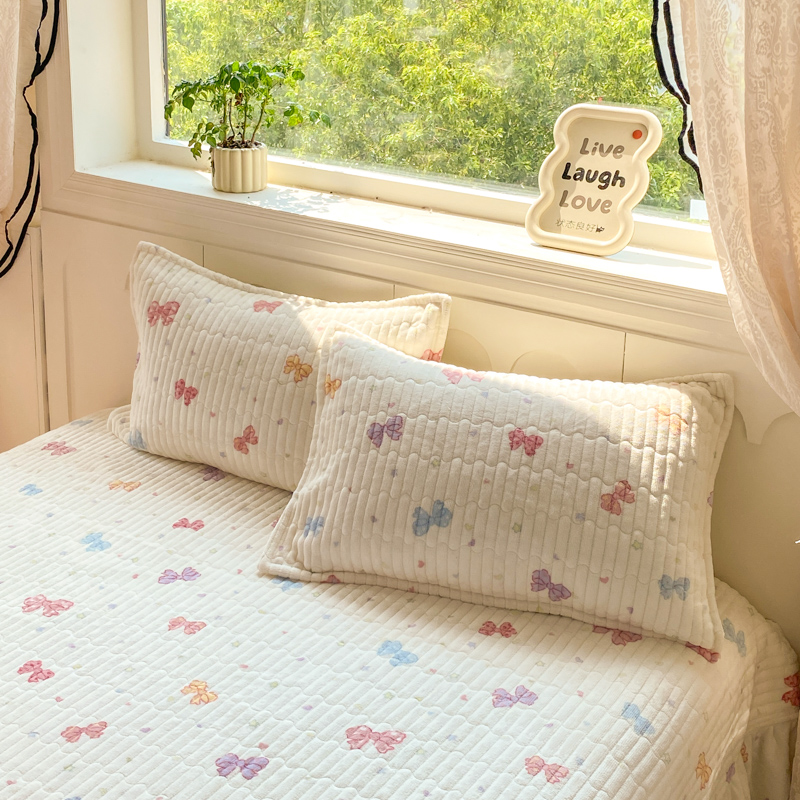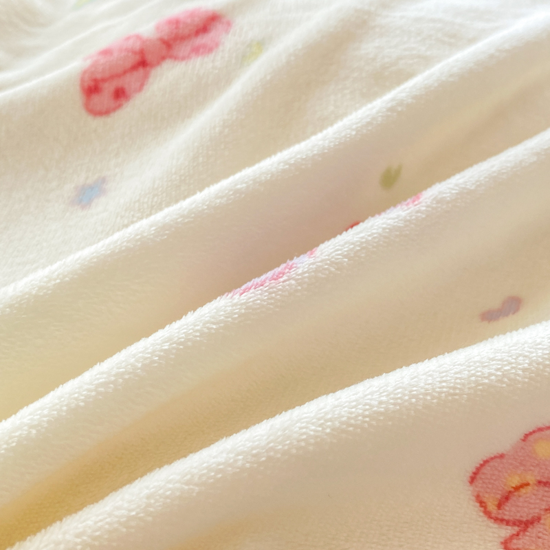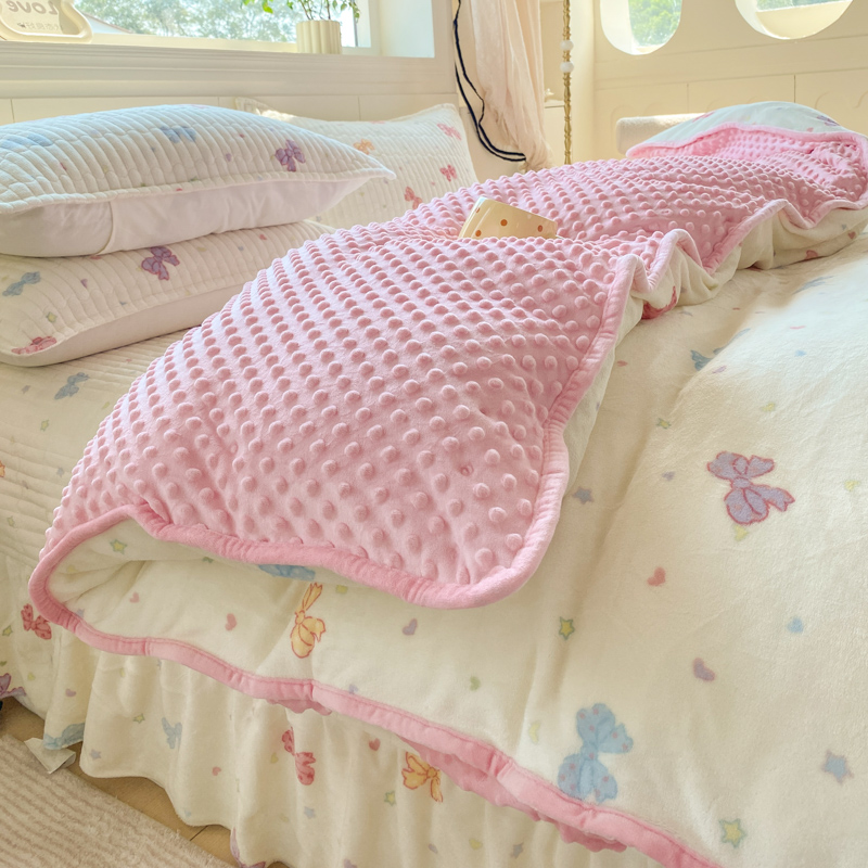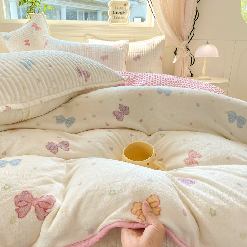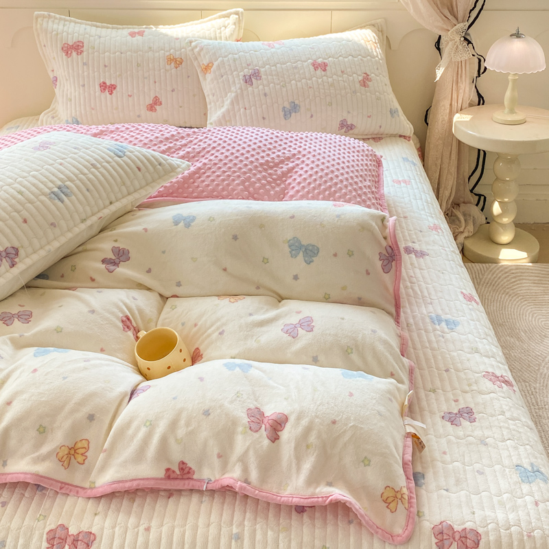 尚美 2025新款豆豆绒牛奶绒大花边床盖四件套(床盖花边随机) 彩色蝴蝶结米
