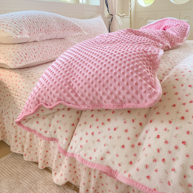 尚美 2025新款豆豆绒牛奶绒大花边床盖四件套(床盖花边随机) 丽莎
