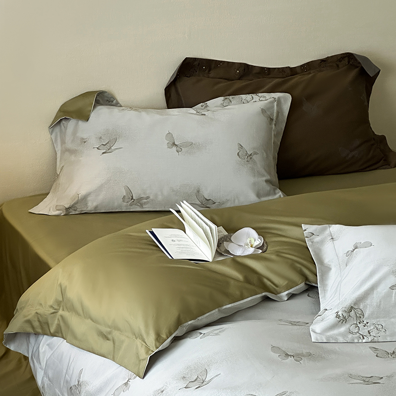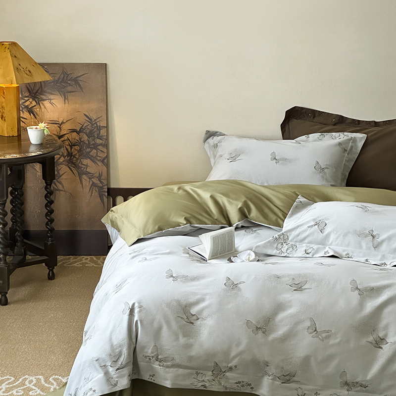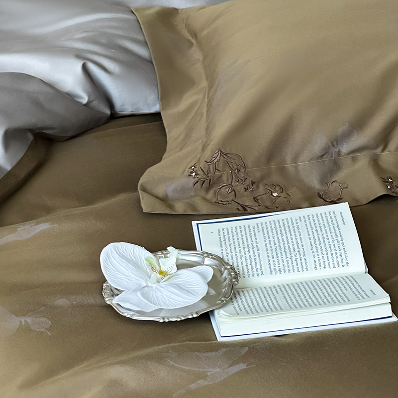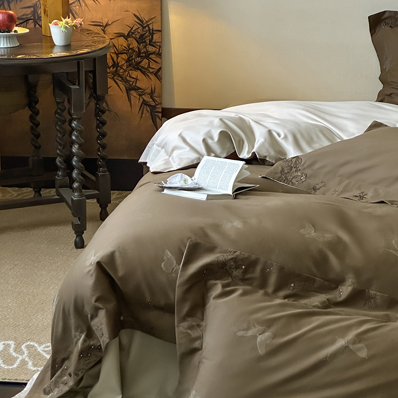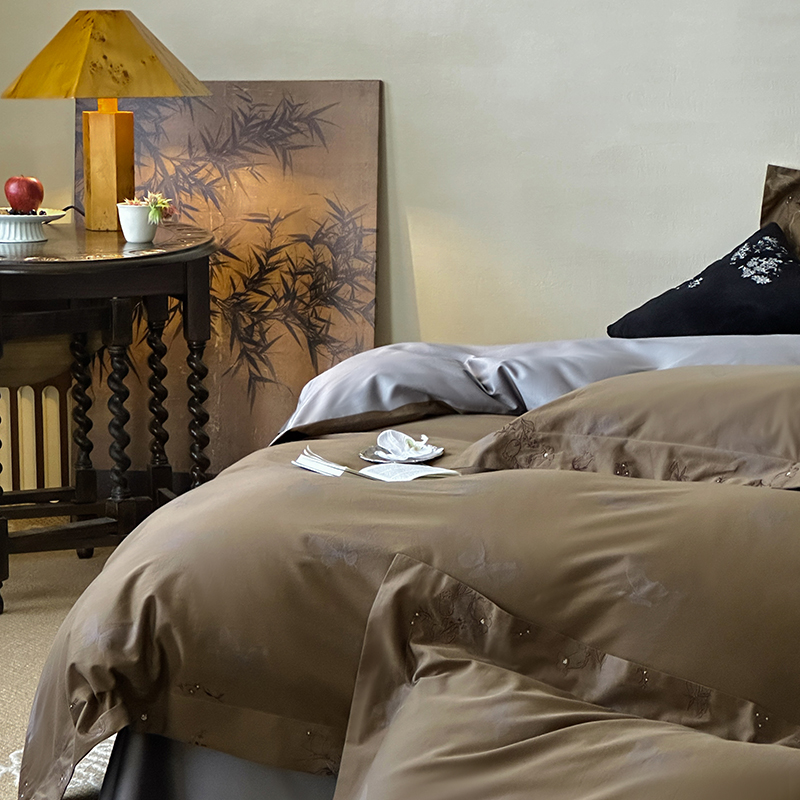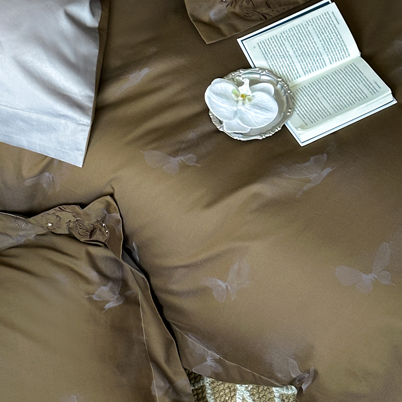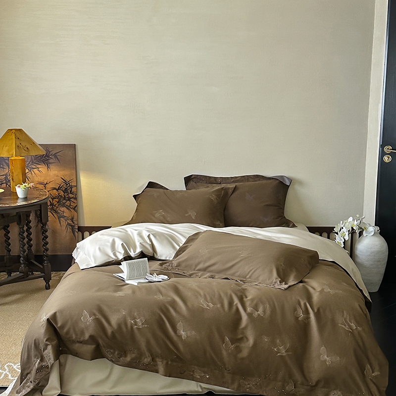 赫帛 2025新款50S色织提花贡缎长绒棉四件套-蝶恋花 蝶恋花-驼色