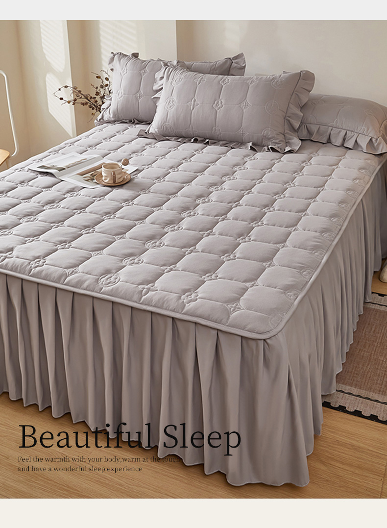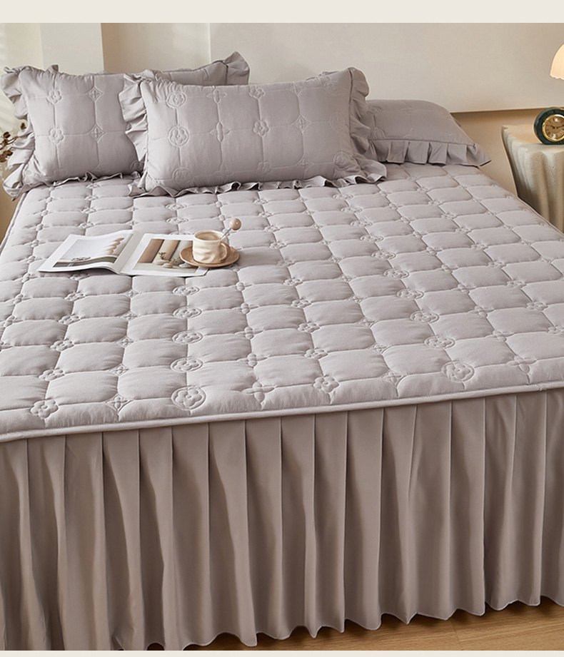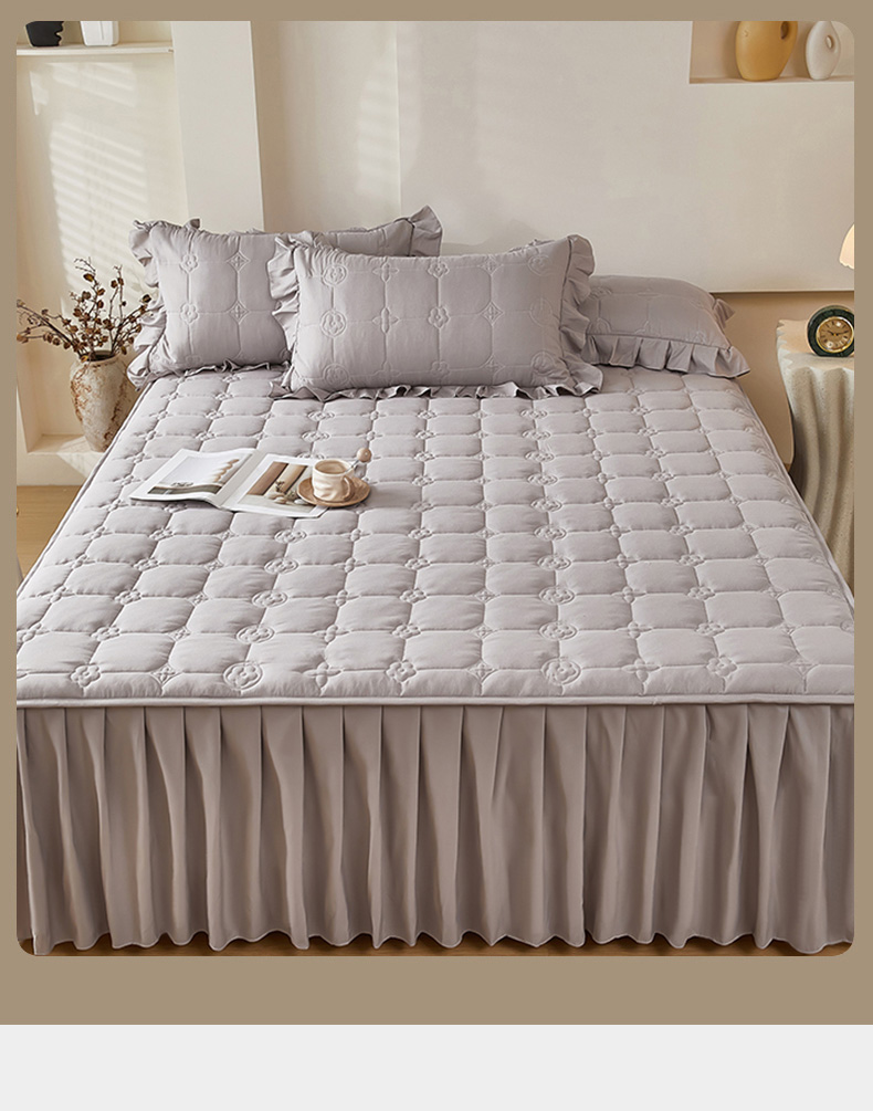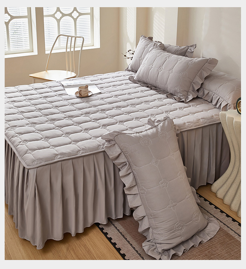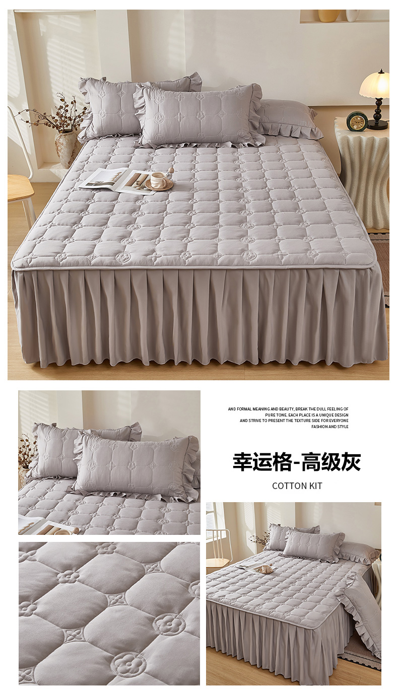 瑞兴纺 2025年新款亲肤夹棉床笠床裙 床裙花边款:幸运格-高级灰