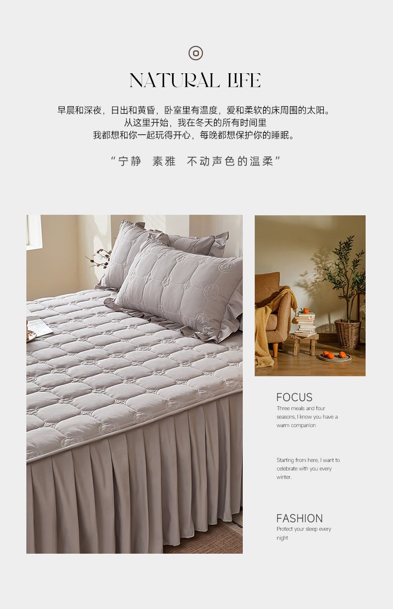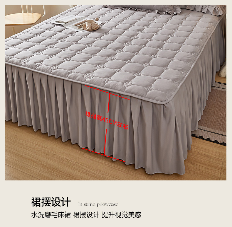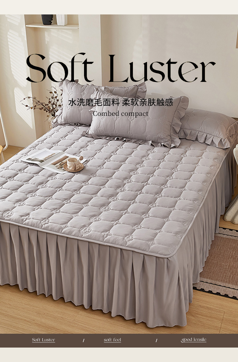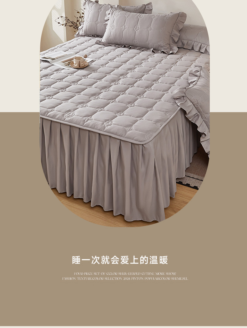 • 91家纺网 家纺一手货源 找家纺 瑞兴纺 2025年新款亲肤夹棉床笠床裙 床裙花边款:幸运格-高级灰