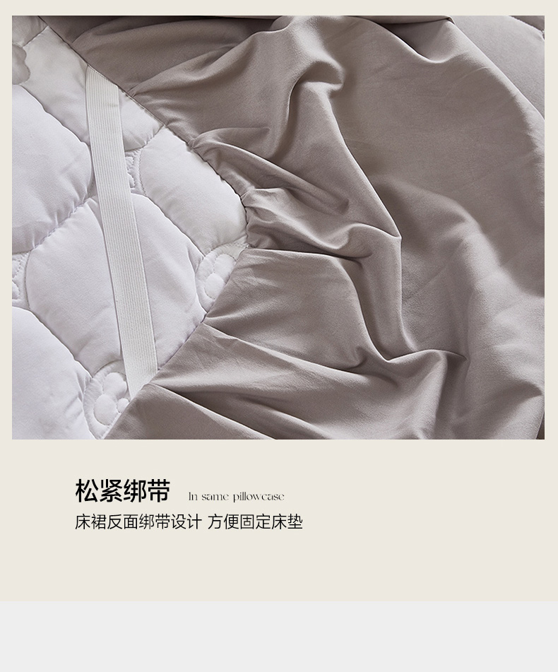 当前位置: 91家纺网 > 商品网购 > 床上用品 > 床笠 > 瑞兴纺 2025年新款亲肤夹棉床笠床裙 床裙花边款:幸运格-高级灰