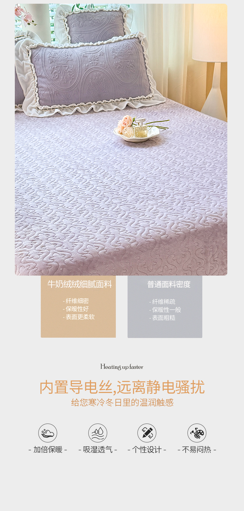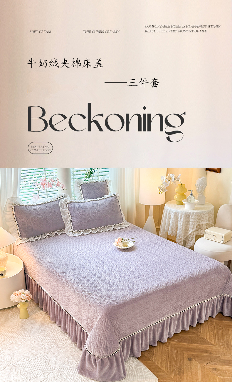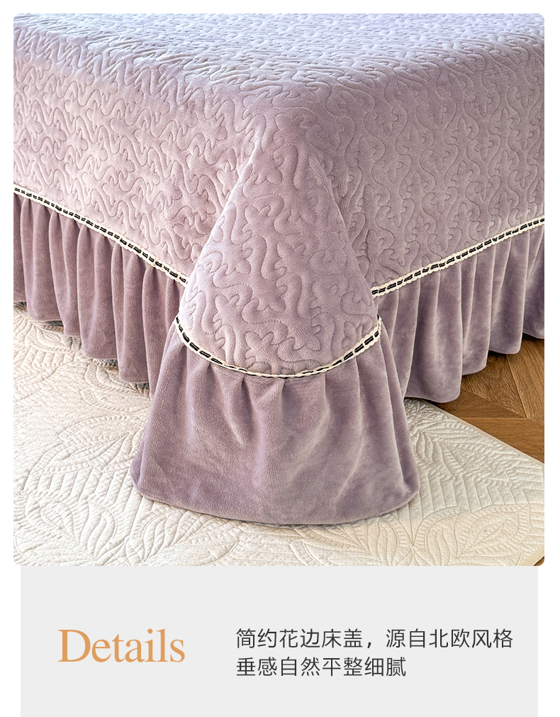 商品名称:花香四季家纺 2025新款牛奶绒夹棉床盖单件三件套-浪漫花语 浪漫花语-优雅紫