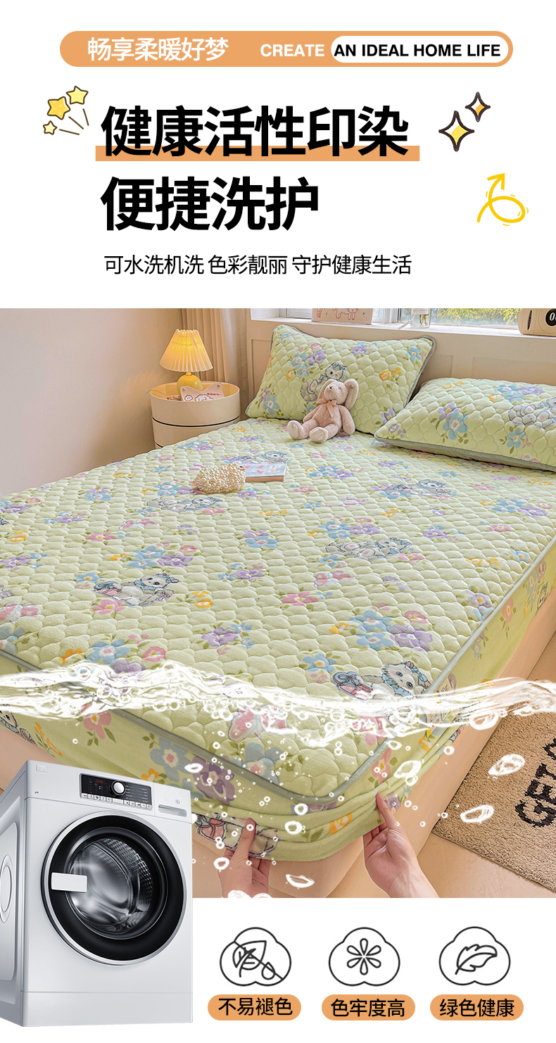 • 91家纺网 家纺一手货源 找家纺 康纳利 2025新款A类抗菌加厚牛奶绒印花夹棉床笠可搭配同款四件套 奶油小熊