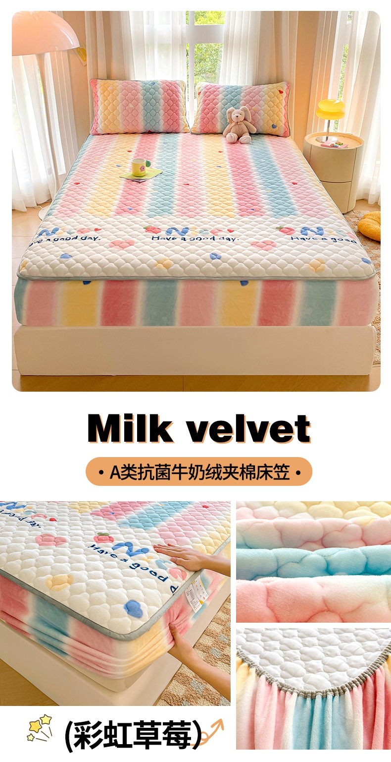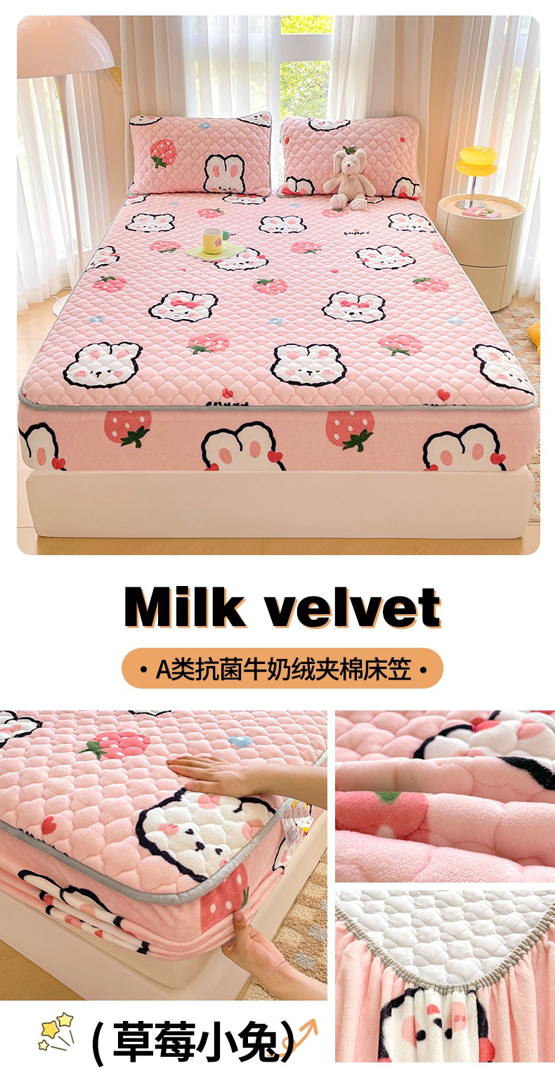 (总)康纳利 2025新款A类抗菌加厚牛奶绒印花夹棉床笠可搭配同款四件套,可爱宠物,暖意,幸运熊,花间小兔,梦幻星空,波点兔,彩虹草莓,草莓小兔,粉色爱心,哈尼小熊,蝴蝶结,花意-咖,奶油小熊,幸运流星,幸运小龙,郁意盛开,字母朵朵,字母小旺,繁星,粉萌兔,花眠语,花漾,卡皮巴拉,礼物小咪,萌宠派对,奶油宠物,KT花园
